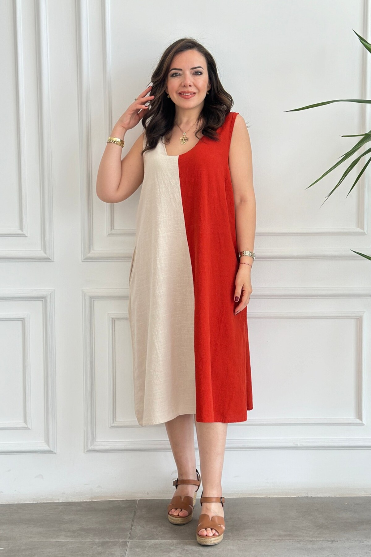 V Yaka Çift Renk Kolsuz Elbise V Yaka Çift Renk Kolsuz Elbise v-yaka-cift-renk-kolsuz-elbise XL