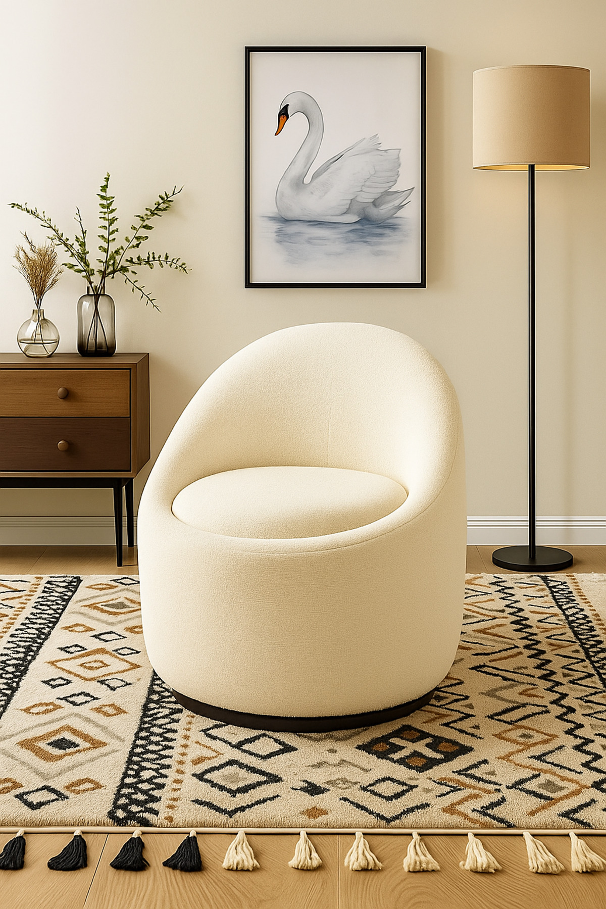 Cherry Döner Berjer, Desenli Teddy, Krem - Yeşil Cherry Döner Berjer, Desenli Teddy, Krem - Yeşil ch1 تک سایز