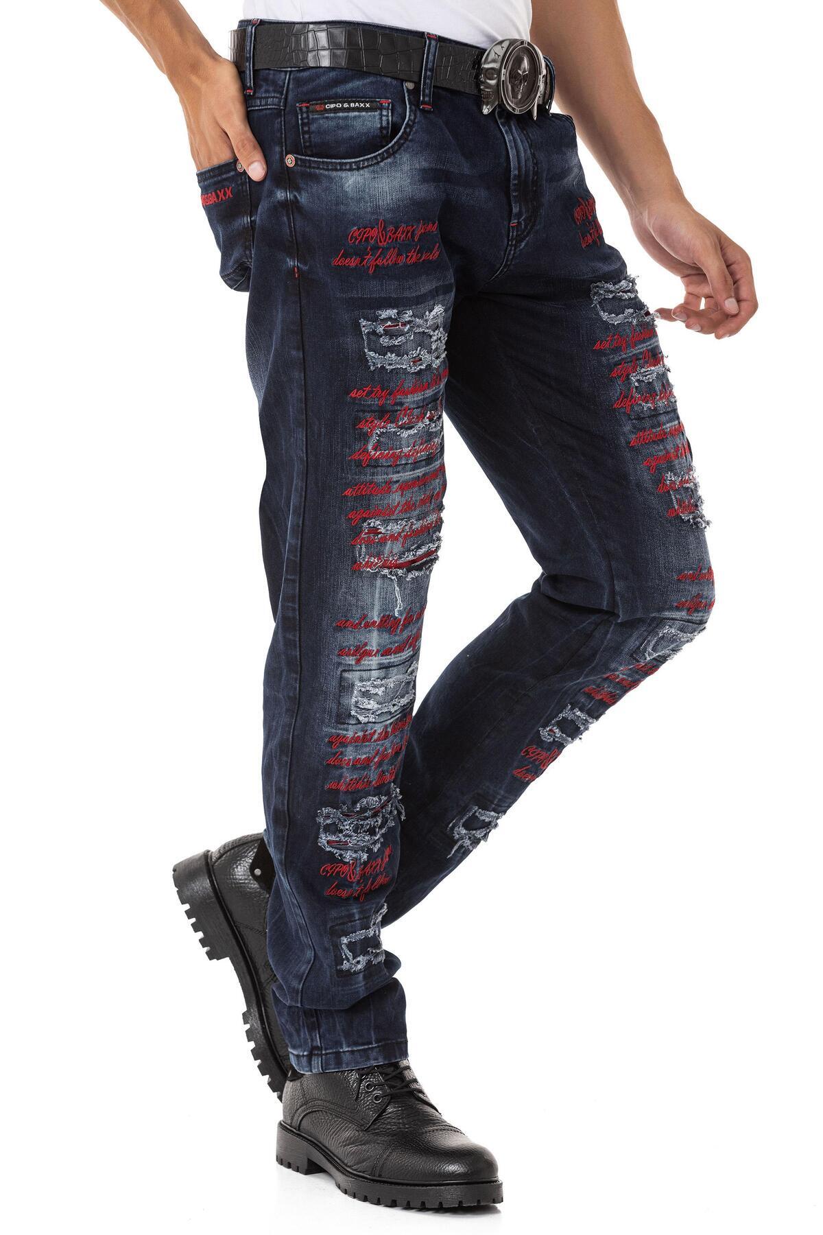 CD694 Yırtık Detaylara Sahip Yazı İşlemeli Erkek Jean Pantolon CD694 Yırtık Detaylara Sahip Yazı İşlemeli Erkek Jean Pantolon 42/34