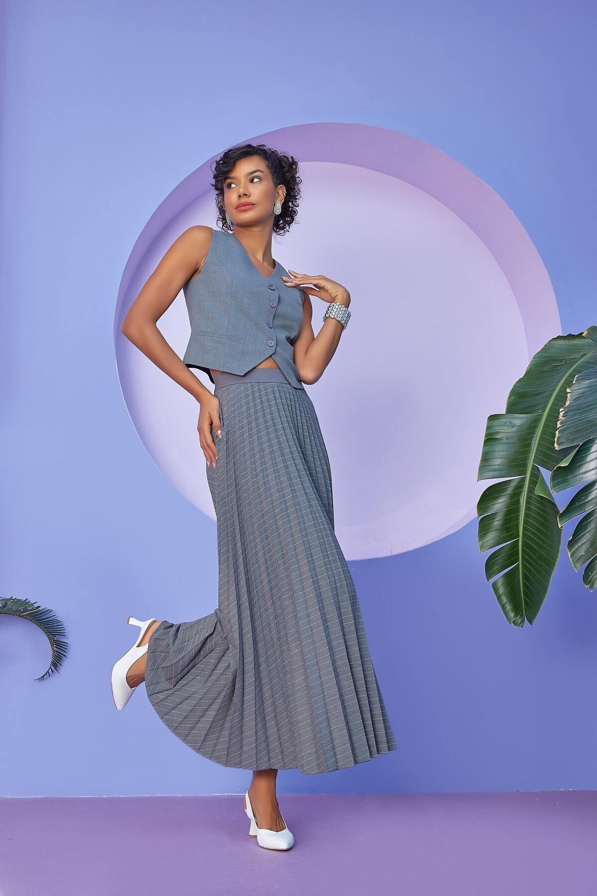 Kuşak Detaylı V Yaka Dokuma Şık Gri Renk Yelek Kuşak Detaylı V Yaka Dokuma Şık Gri Renk Yelek BB110001 42