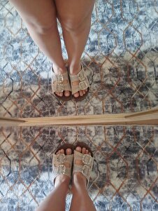 Kadın Bej Nakış Çift Tokalı Zımbalı Anatomik Rahat Taban Kadın Terlik Sandalet Kadın Bej Nakış Çift Tokalı Zımbalı Anatomik Rahat Taban Kadın Terlik Sandalet 51-0108-24 40
