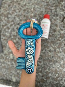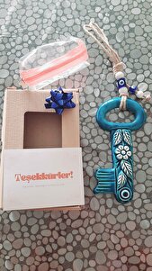 Nazar Boncuklu Anahtar Şekilli Seramik Çiçek Desenli Çok Amaçlı Dekoratif Süs Eşyası 9X19 CM Nazar Boncuklu Anahtar Şekilli Seramik Çiçek Desenli Çok Amaçlı Dekoratif Süs Eşyası 9X19 CM RevardHomeDuvarSüsleriSet2 9 x 18