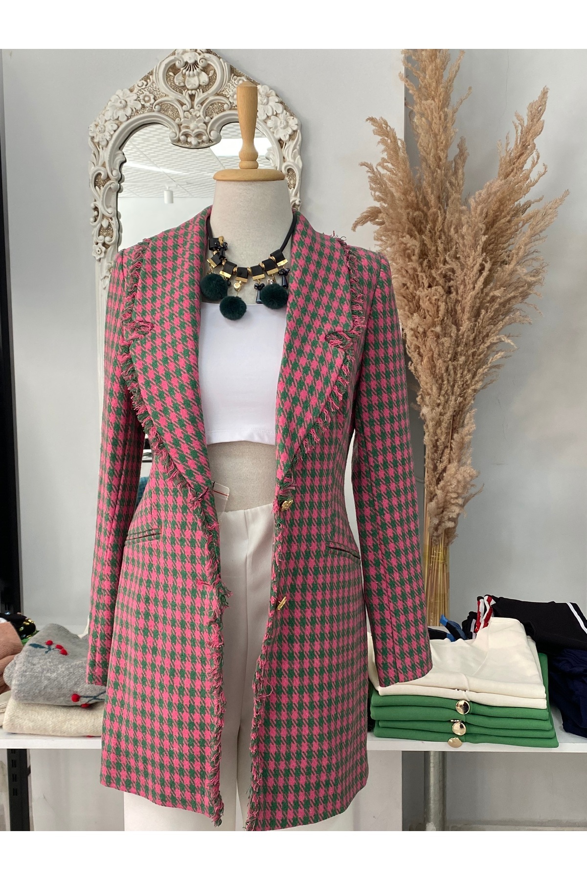 Kadın Kazayağı Desenli Metal Düğme Detaylı Ceket Yeşil Kadın Kazayağı Desenli Metal Düğme Detaylı Ceket Yeşil GZC.D88418 40