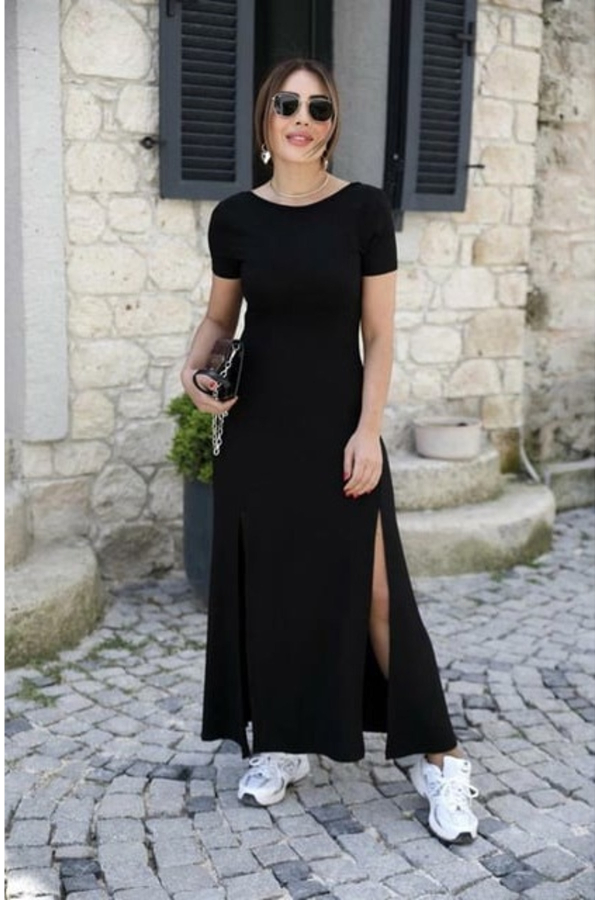 Kadın Kısa Kollu Sırt Dekolte Detay önü çift Yırtmaçlı Viskon Elbise Kadın Kısa Kollu Sırt Dekolte Detay önü çift Yırtmaçlı Viskon Elbise VY-6655803216673 2XL-3XL