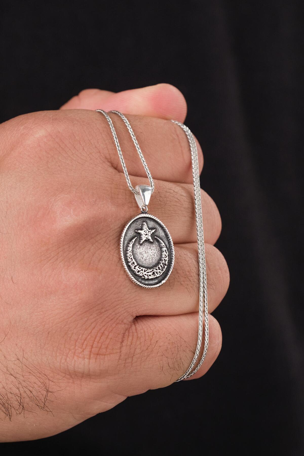 Ay Yıldız Türk Boyları İşlemeli Gümüş Kolye Ay Yıldız Türk Boyları İşlemeli Gümüş Kolye TKFSS947 65 cm