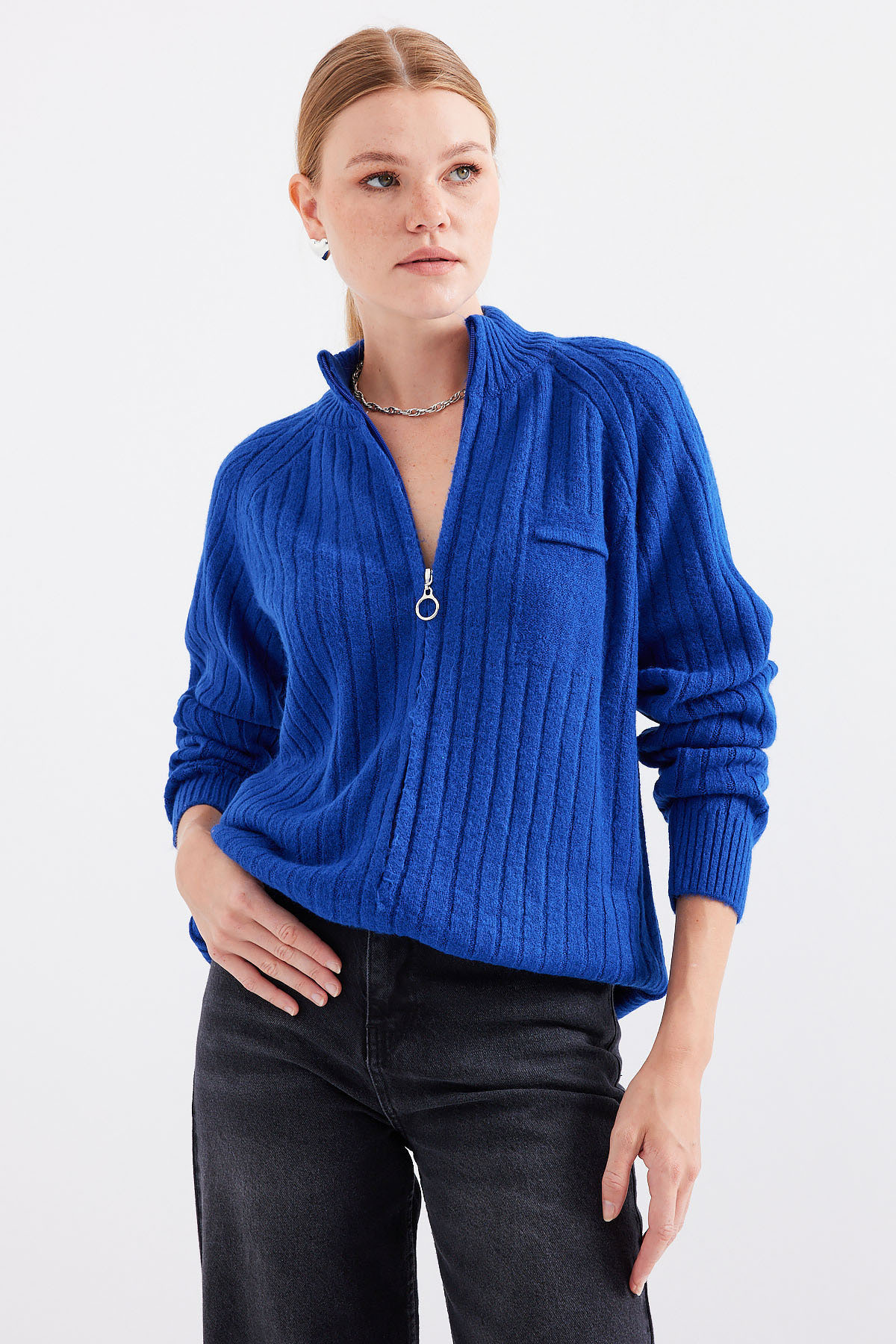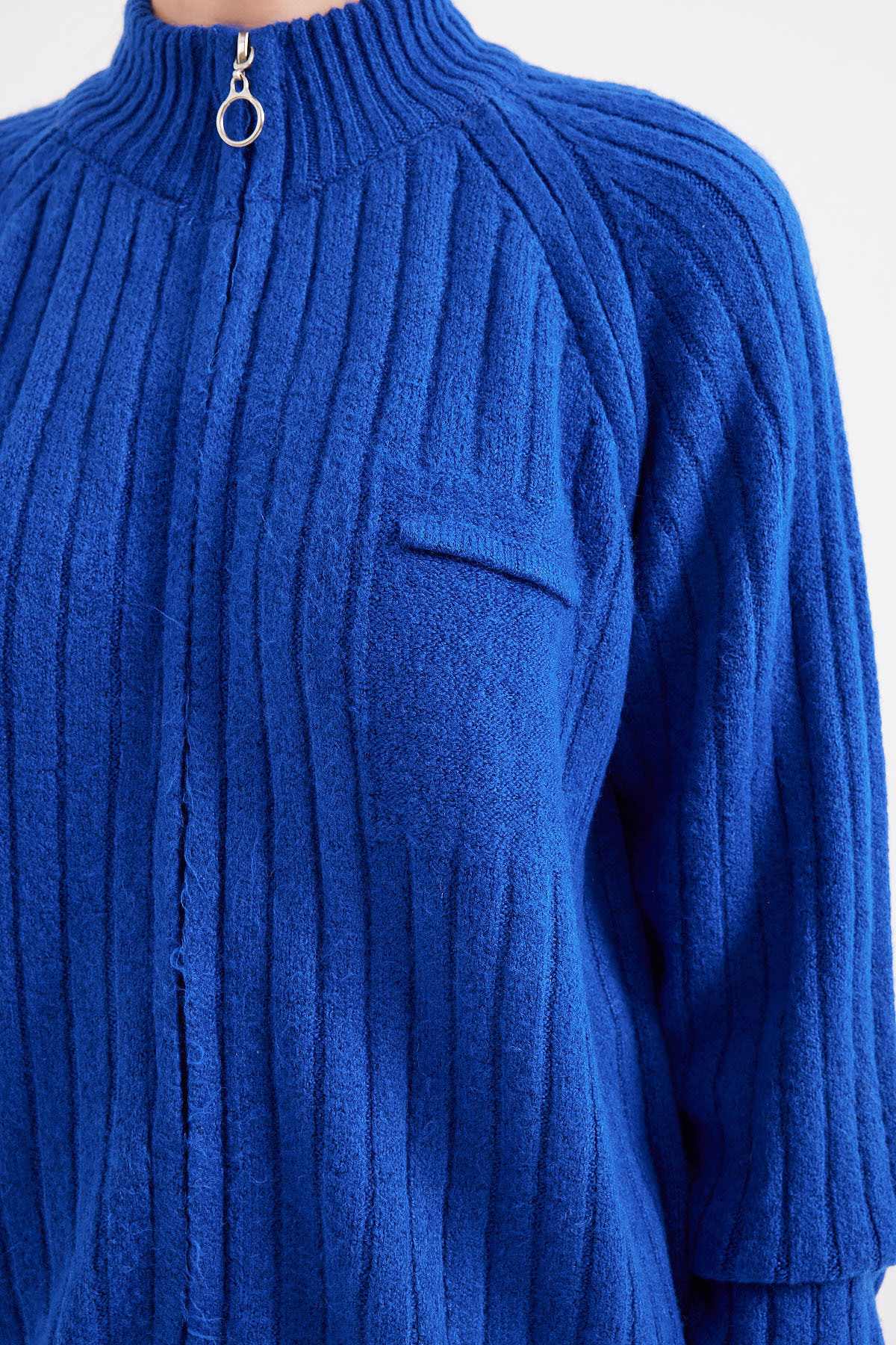 15880 Fermuarlı Triko Hırka - Saks 15880 Fermuarlı Triko Hırka - Saks 15880BGD19 Standart