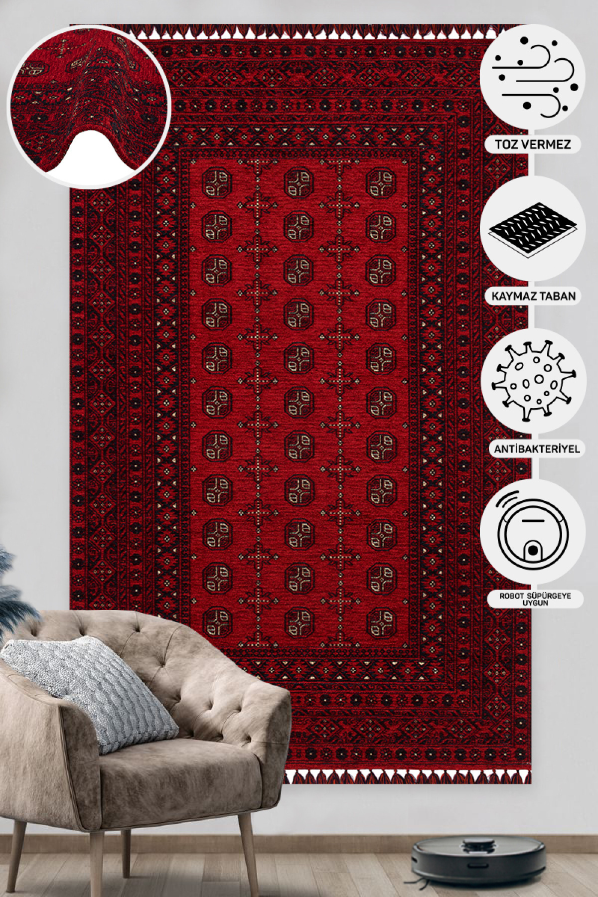Nostaljik Afgan Yağcıbedir Desenli Antialerjik Yıkanabilir Kaymaz Ince Dokuma Kırmızı Halı Nostaljik Afgan Yağcıbedir Desenli Antialerjik Yıkanabilir Kaymaz Ince Dokuma Kırmızı Halı BHR 03 RED 160 x 230