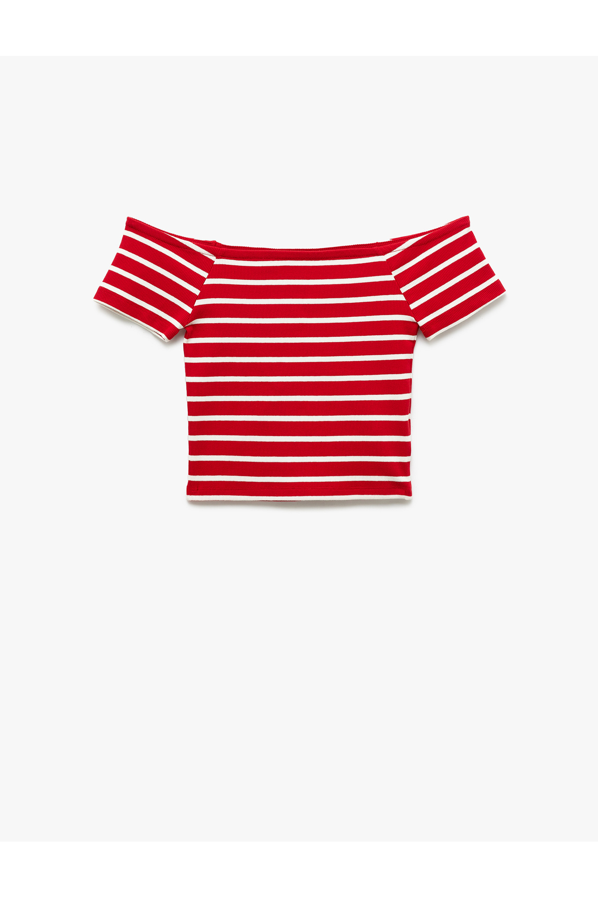 Madonna Yaka Omzu Açık Tişört Dokulu Kısa Kollu Slim Fit Madonna Yaka Omzu Açık Tişört Dokulu Kısa Kollu Slim Fit 4SAK50720EK 2XL