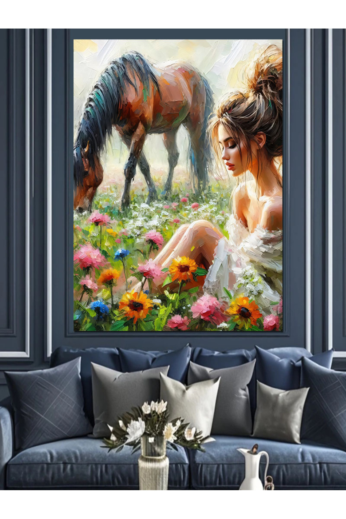 Kanvas Tablo At ve Güzel Kız Temalı Tablo Kanvas Tablo At ve Güzel Kız Temalı Tablo tablovip2493 70 x 100