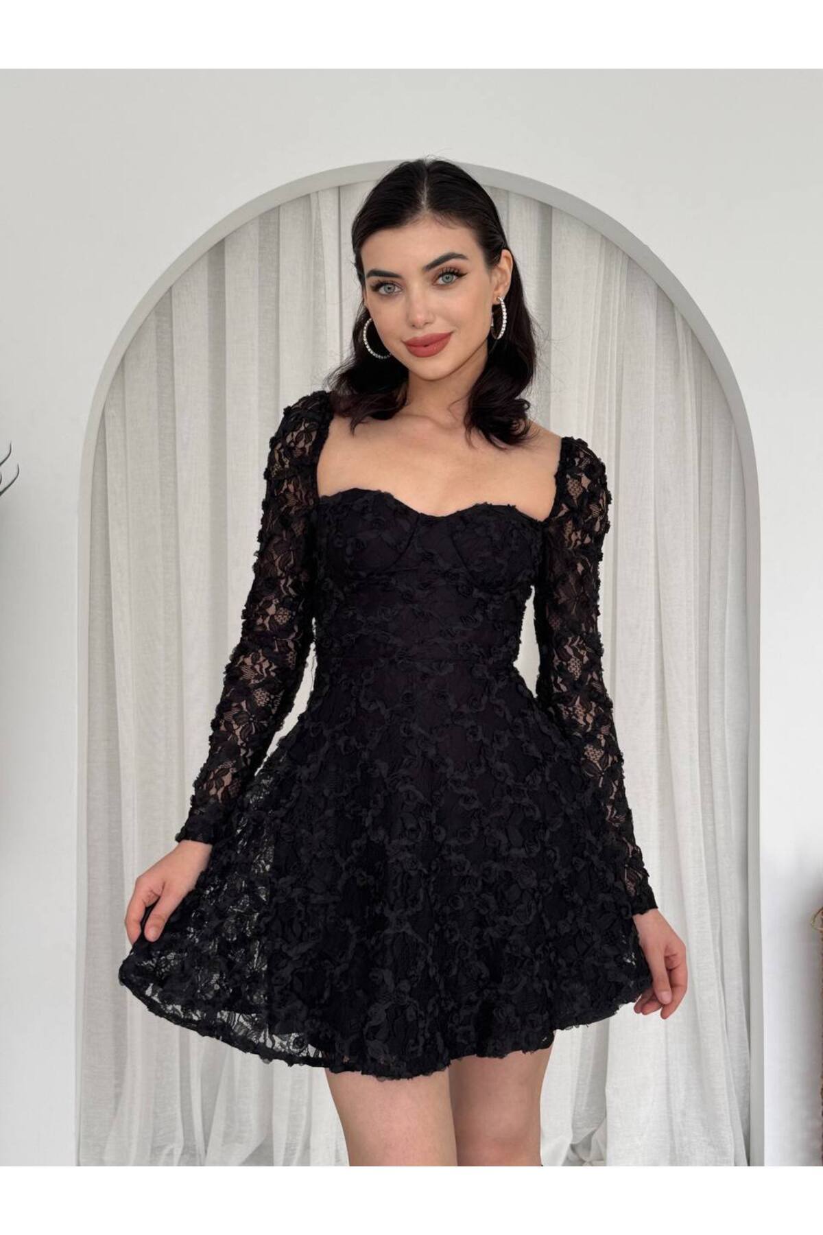Kadın Siyah Kruvaze Yaka Drapeli Şifon Siyah Mini Elbise Kadın Siyah Kruvaze Yaka Drapeli Şifon Siyah Mini Elbise msc60 M