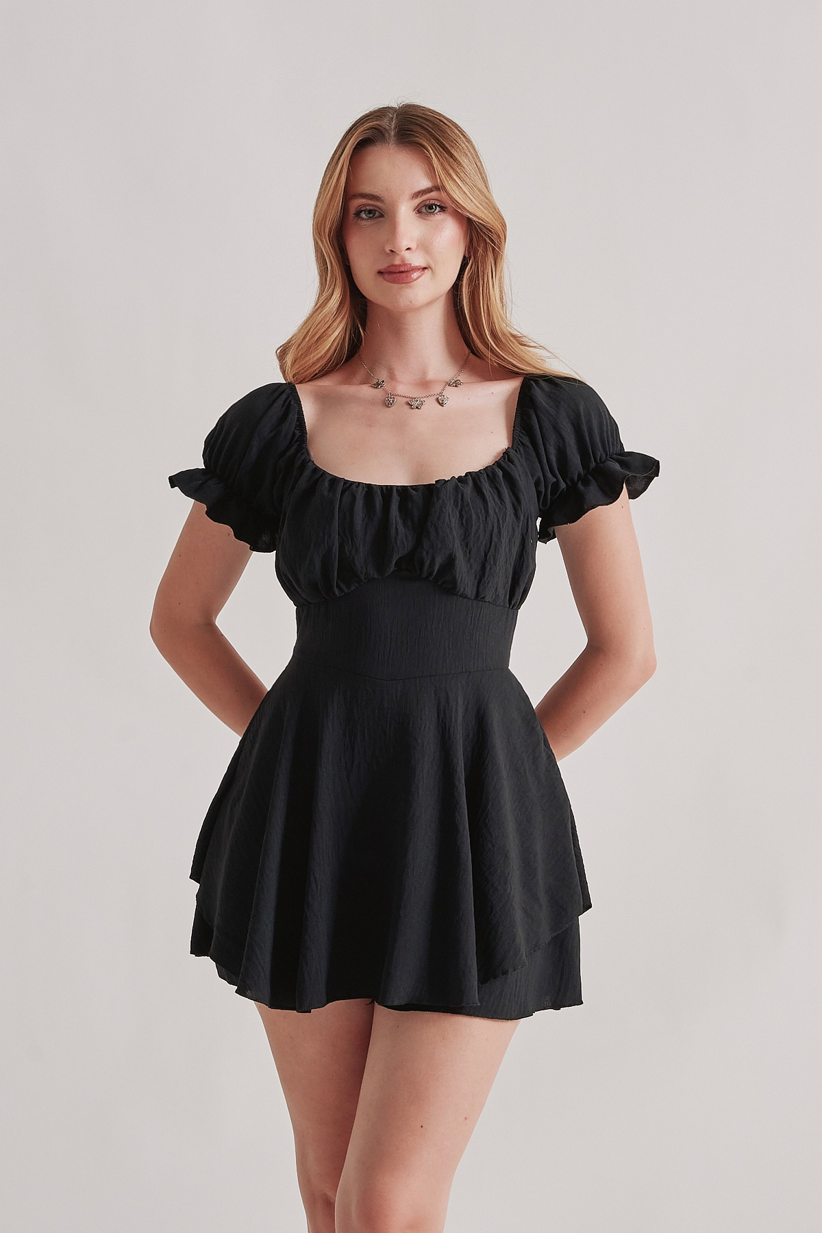 Eteği Şortlu Balon Kol Mini Kırmızı Elbise Eteği Şortlu Balon Kol Mini Kırmızı Elbise ely13 L