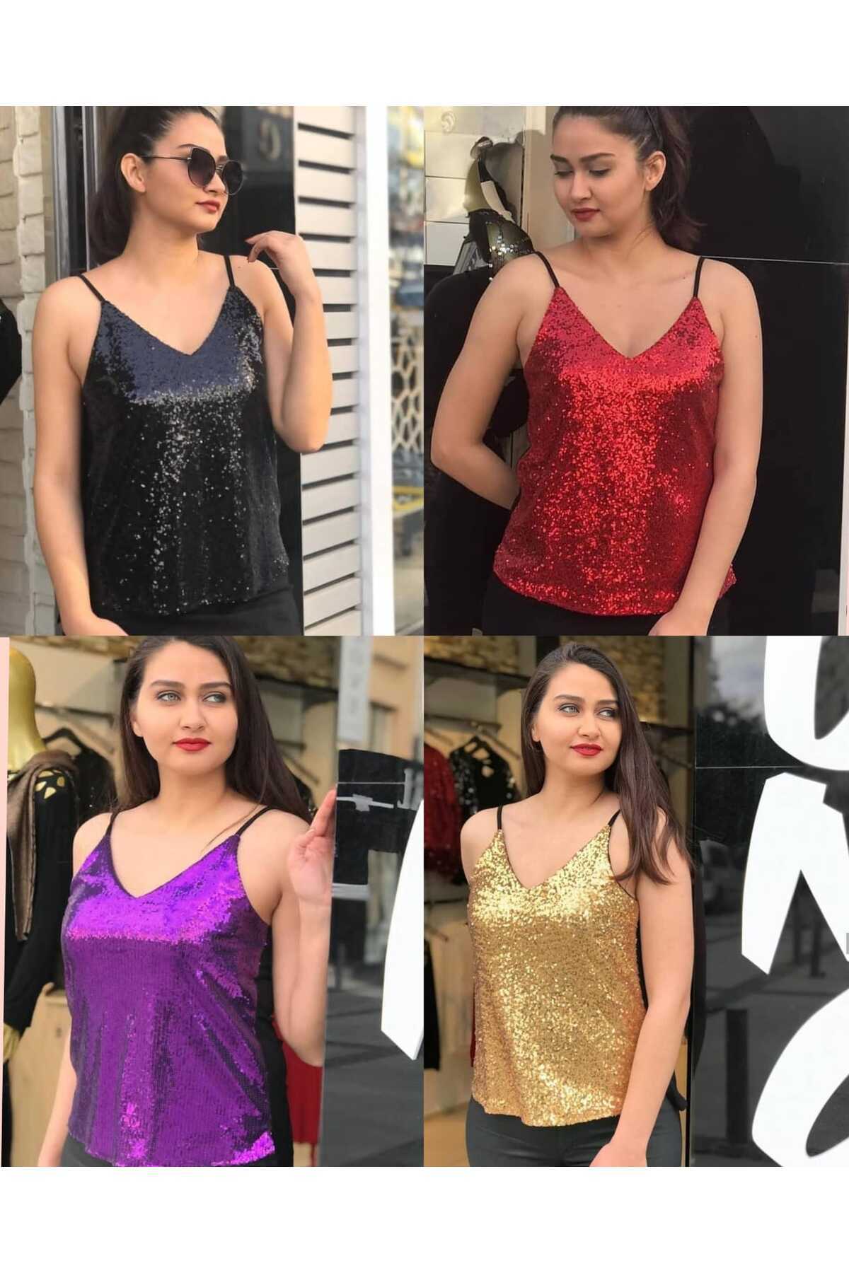 V Yaka Önü Büzgülü Likralı Simli Bluz V Yaka Önü Büzgülü Likralı Simli Bluz S-24Y3080022 XL