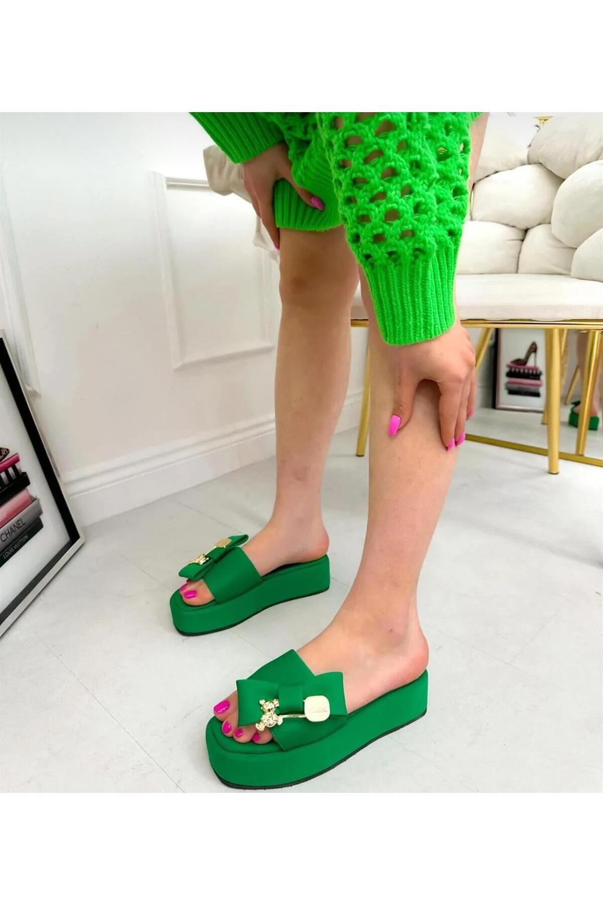 Kadın Gold Fiyonk Detay Terlik-Yeşil Kadın Gold Fiyonk Detay Terlik-Yeşil hmr-flr004-2024 40
