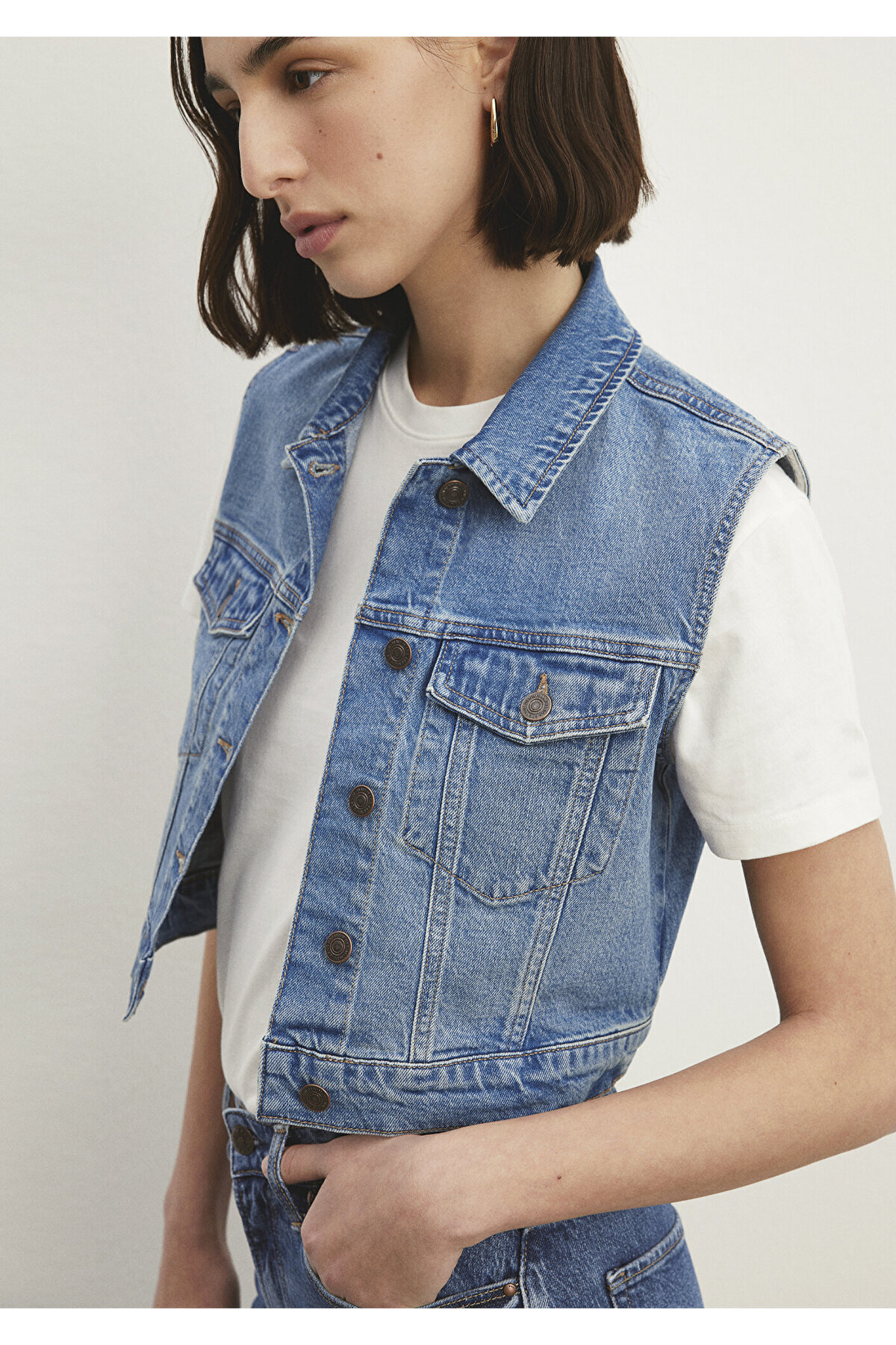 50731 Arkası Açık Yakalı Denim Yelek-Mavi 50731 Arkası Açık Yakalı Denim Yelek-Mavi 101A50731 38