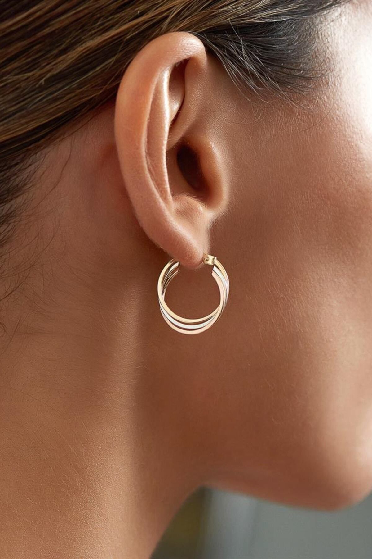 14 Ayar Altın Triple Halka Model Küpe 14 Ayar Altın Triple Halka Model Küpe GFJKUP0020 تک سایز