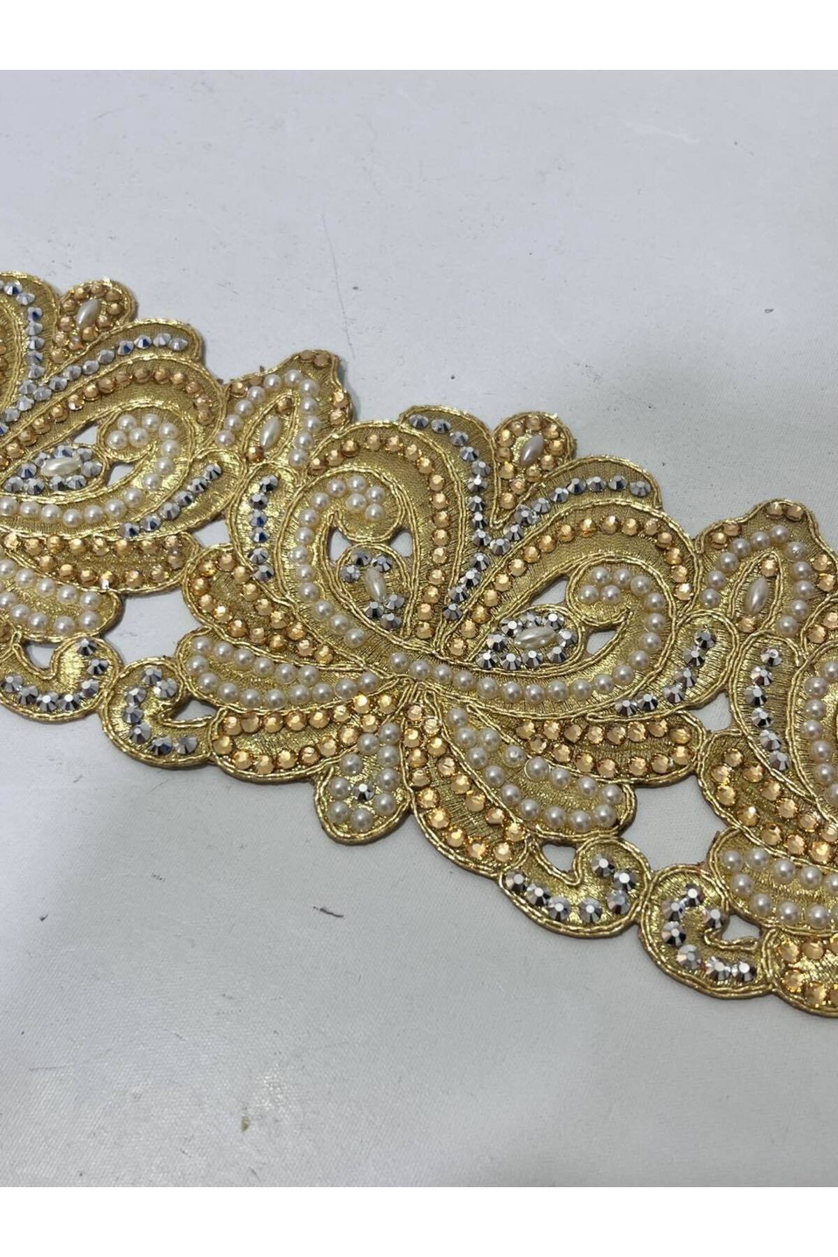 Taş ve Boncuk İşlemeli Güpür Aplike 8 Metre (Model 6) Taş ve Boncuk İşlemeli Güpür Aplike 8 Metre (Model 6) HSYLMZ15831 تک سایز