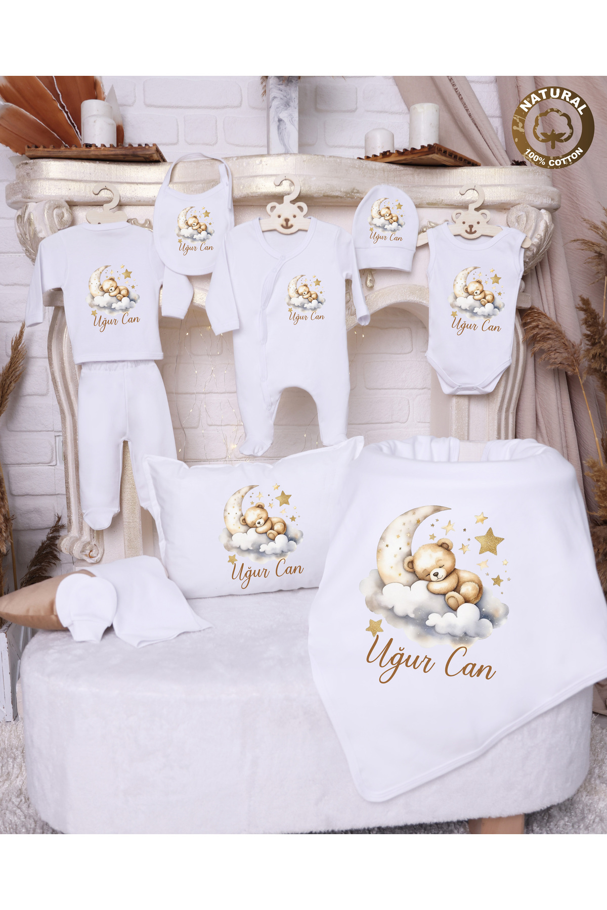 Isime Özel %100 Pamuk Baskılı 11'li Isimli Organik Bebek Hastane Çıkışı Isime Özel %100 Pamuk Baskılı 11'li Isimli Organik Bebek Hastane Çıkışı KRAL01 0-3 AY