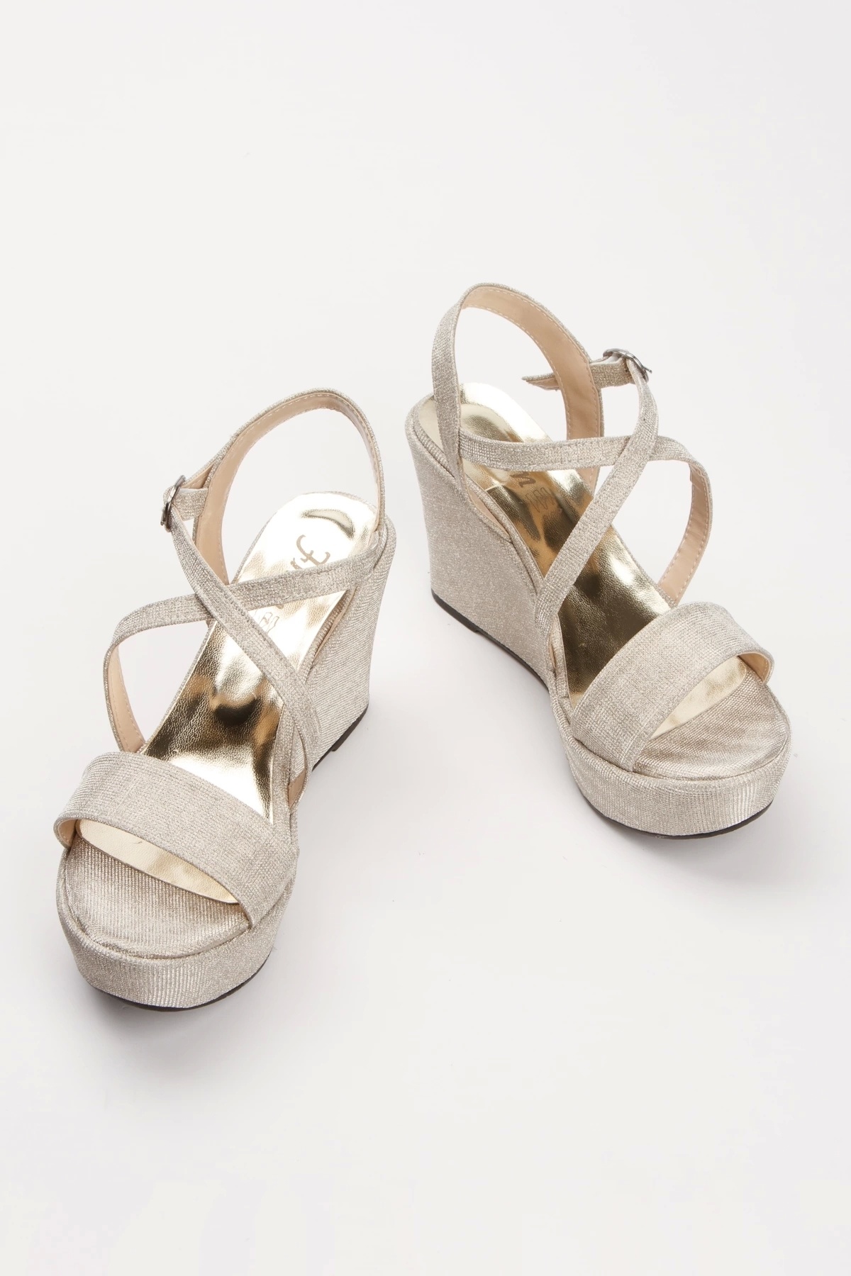 Kadın Altın Özel Üretim Dolgu Topuklu Sandalet Kadın Altın Özel Üretim Dolgu Topuklu Sandalet Fhmnew 40