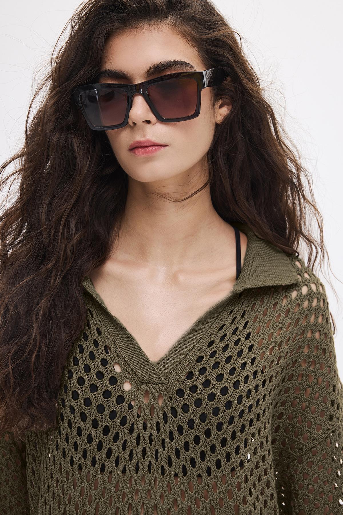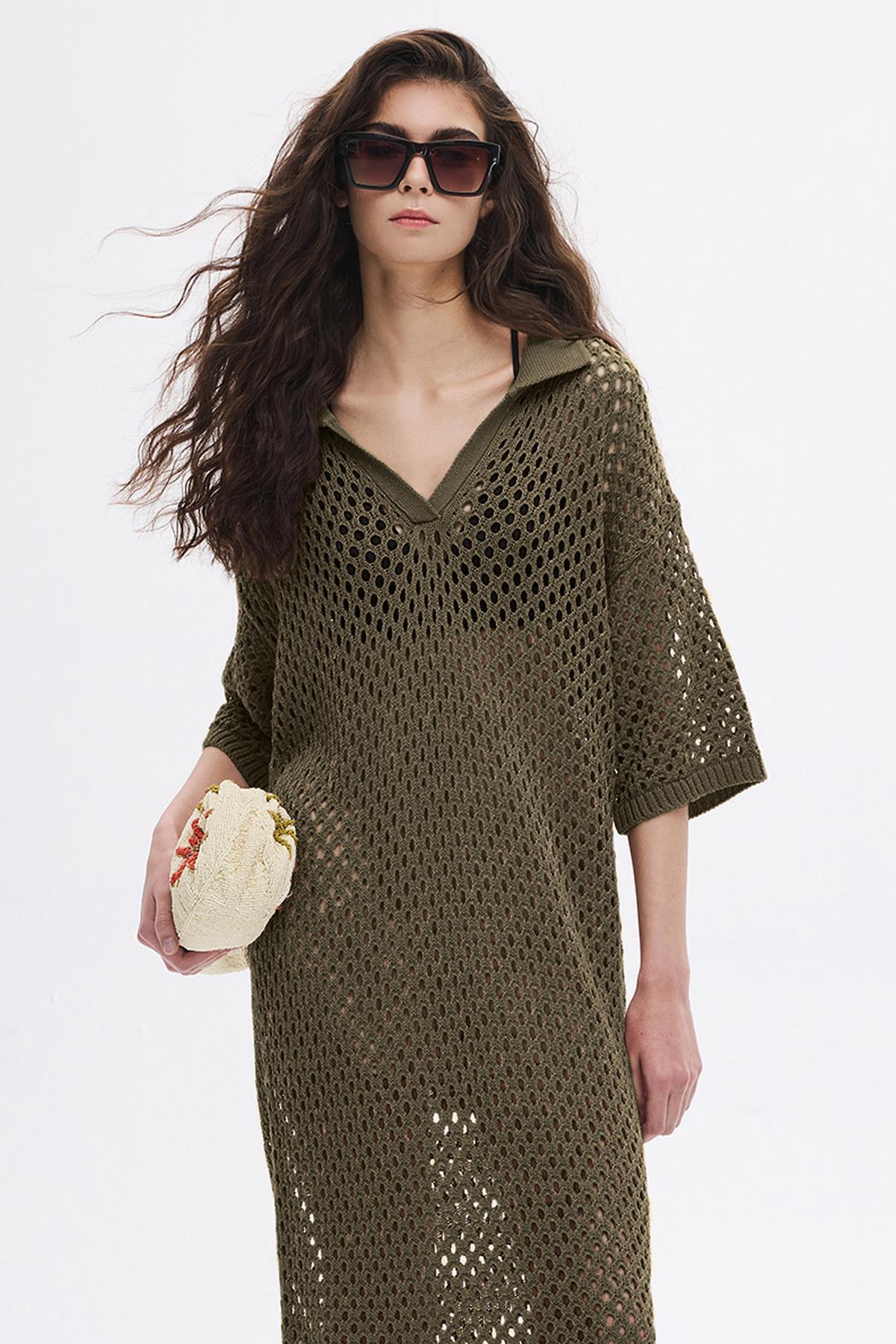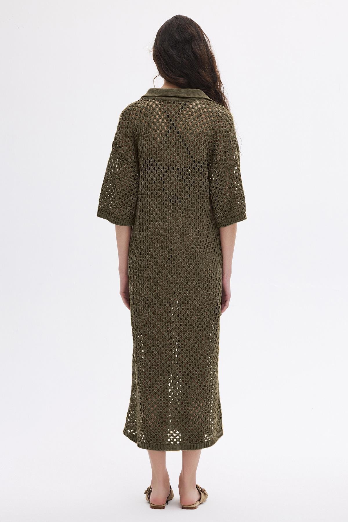 Haki Ajurlu Polo Yaka Elbise Haki Ajurlu Polo Yaka Elbise SS23D5018 M/L