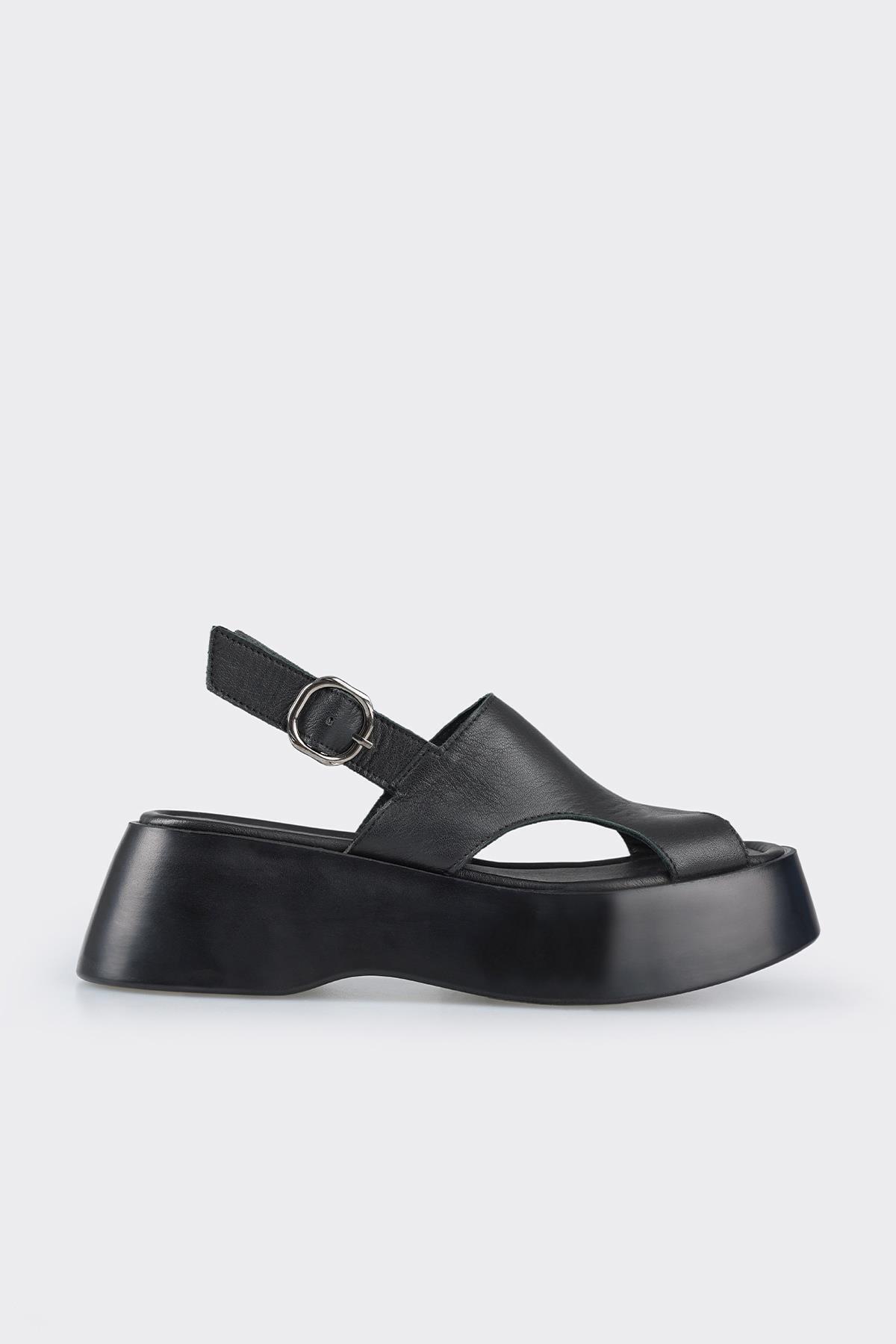 Siyah Deri Kadın Düz Sandalet Siyah Deri Kadın Düz Sandalet MEDIVE 40