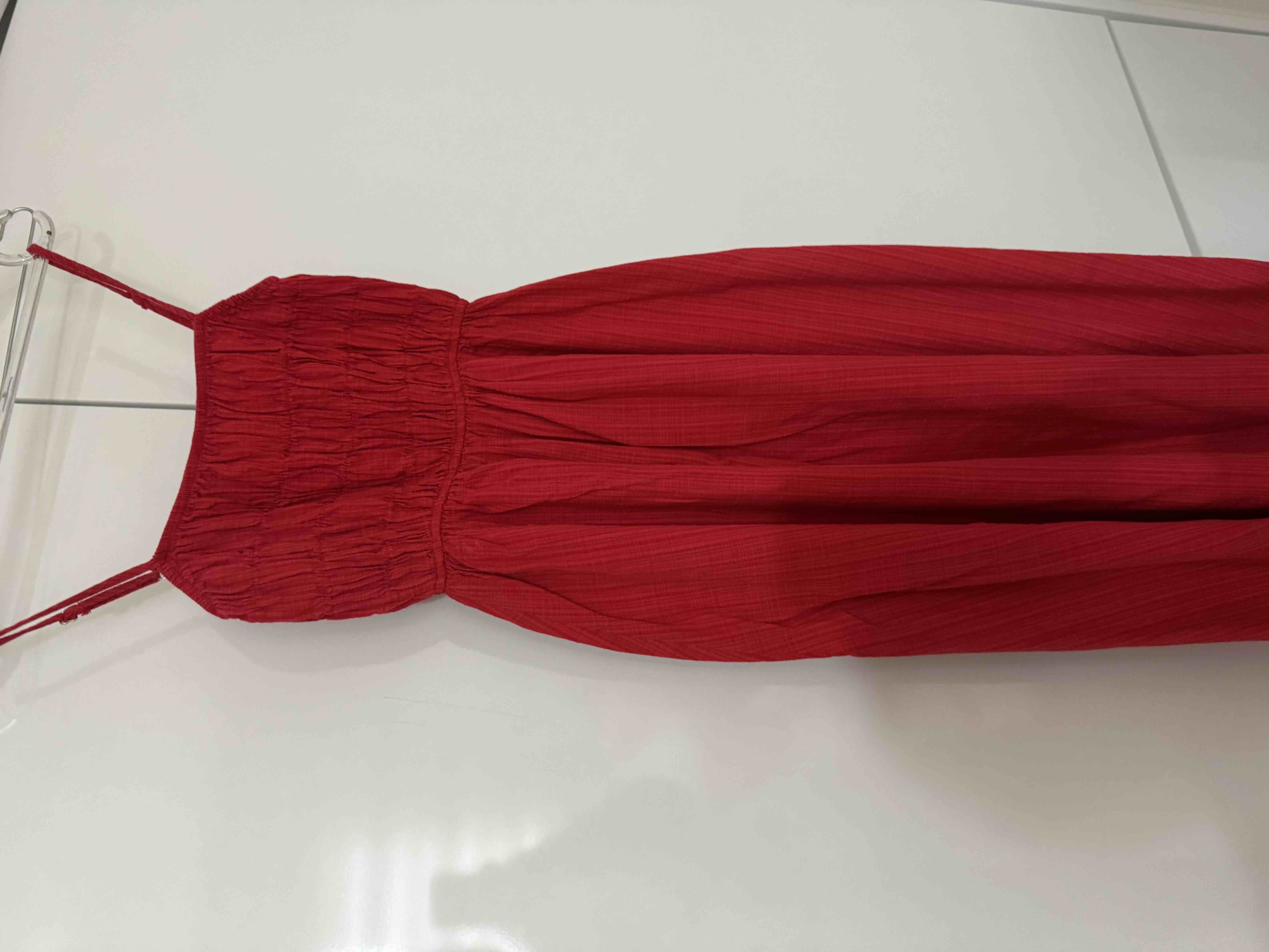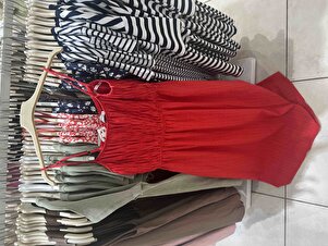 A Kesim Keten Görünümlü Kırmızı Askılı Maxi Elbise C9236AX24SM A Kesim Keten Görünümlü Kırmızı Askılı Maxi Elbise C9236AX24SM 42