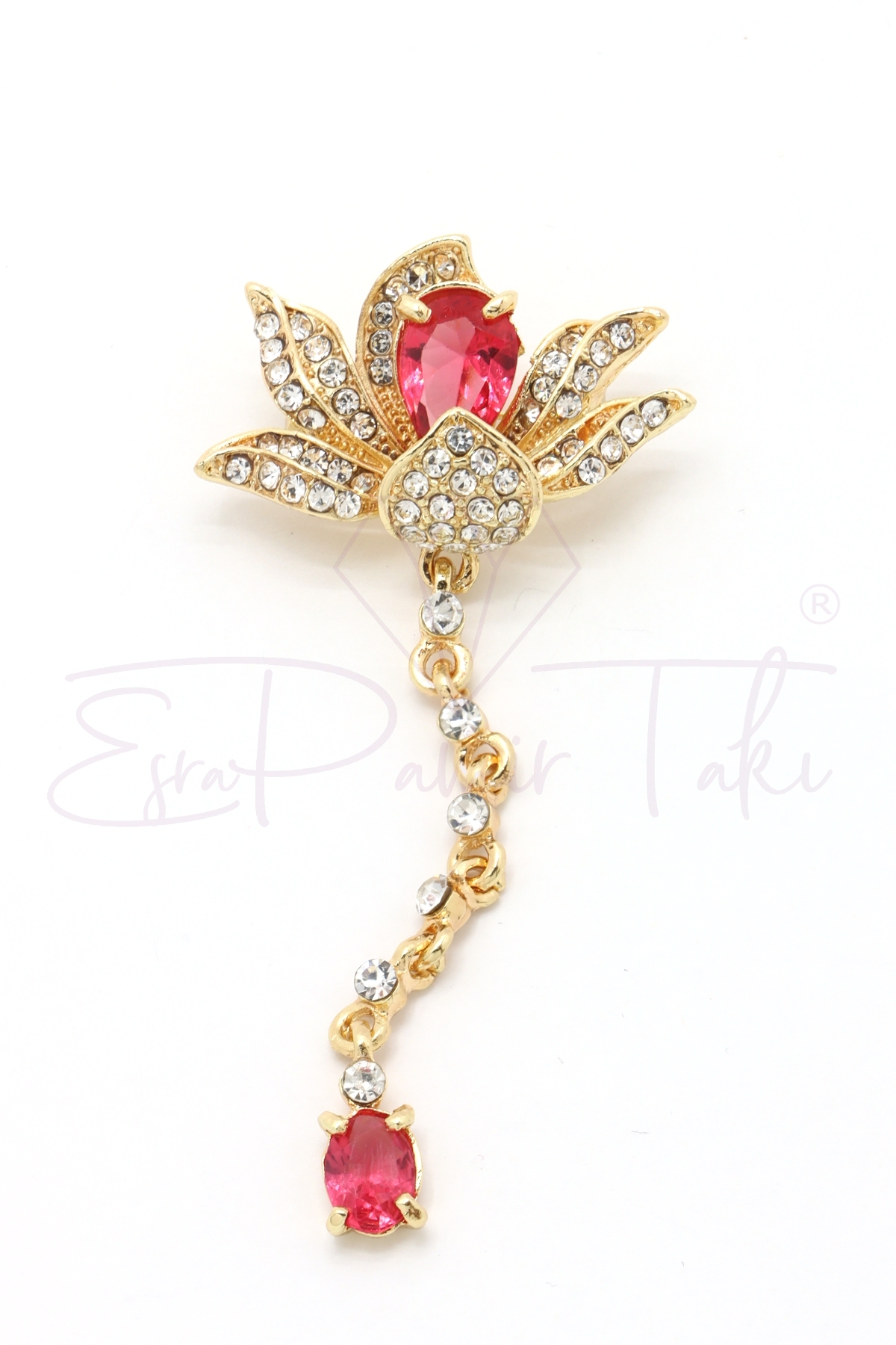 Kırmızı Beyaz Zirkon Taş Elmas Montür Lale Broş Kırmızı Beyaz Zirkon Taş Elmas Montür Lale Broş EP2704 تک سایز