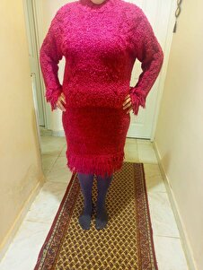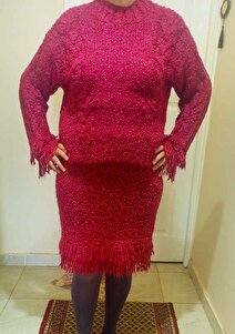 Fuşya Püsküllü Kazak Etek Triko Takım Fuşya Püsküllü Kazak Etek Triko Takım SWTK4595-96 M/L
