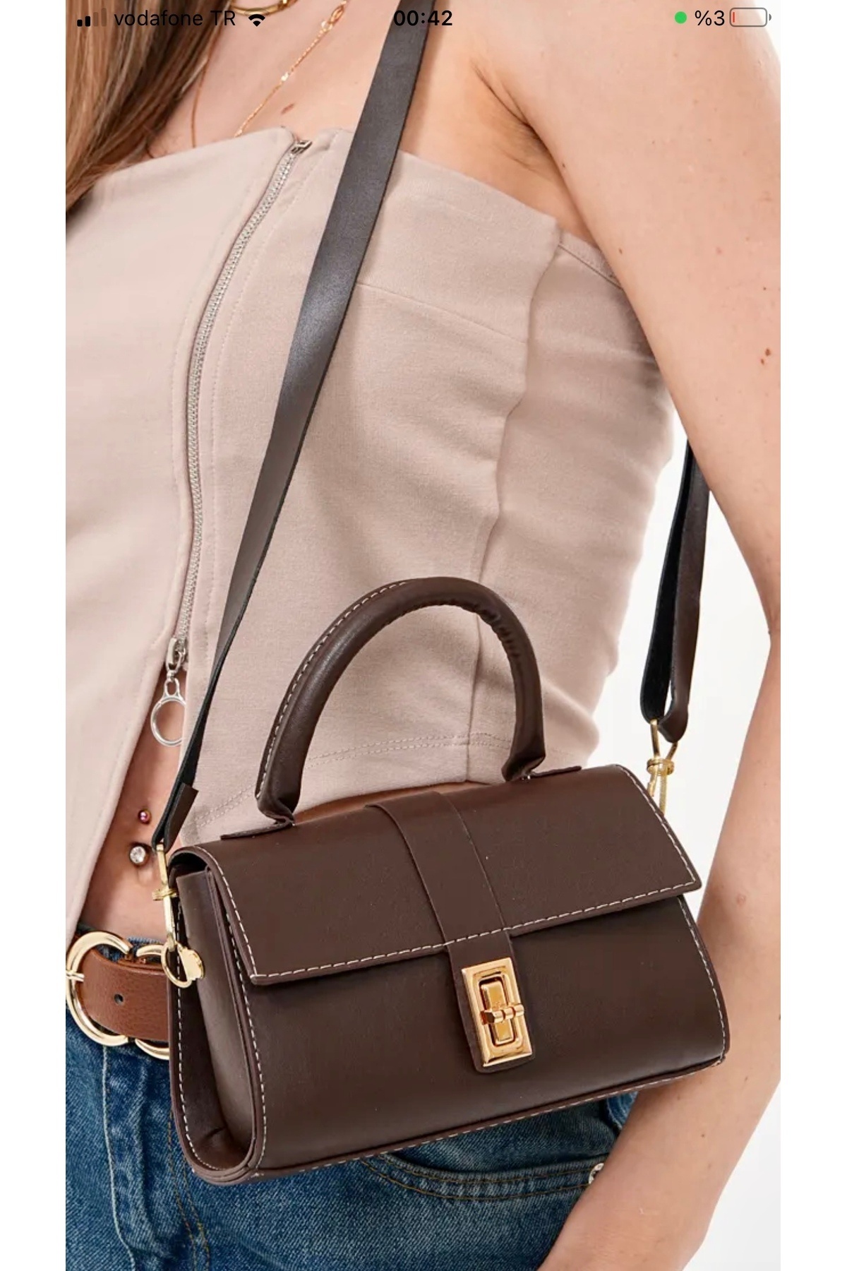 Kilitli Model Kontrast Tasarım Çapraz Askılı Kadın Çantası Kilitli Model Kontrast Tasarım Çapraz Askılı Kadın Çantası kilitlinbi تک سایز