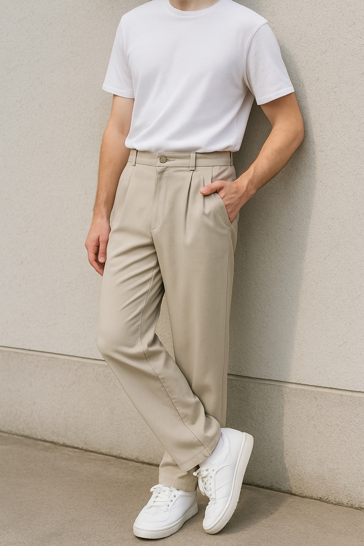 Yüksek Kalite Erkek Yüksek Bel Pileli Baggy Chino Pantolon C358-bej Yüksek Kalite Erkek Yüksek Bel Pileli Baggy Chino Pantolon C358-bej 31 - 32