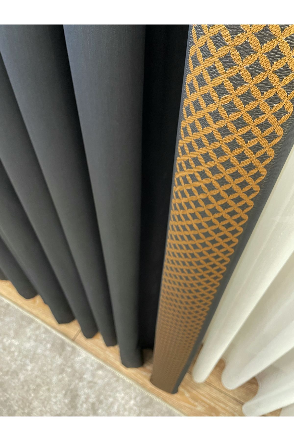 Anrasit Gri - Kiremit Renk Şal Desen 1/3 SIK PİLE Jakar Dokuma Fon Perde Anrasit Gri - Kiremit Renk Şal Desen 1/3 SIK PİLE Jakar Dokuma Fon Perde MGZ_ŞULE 90 x 270