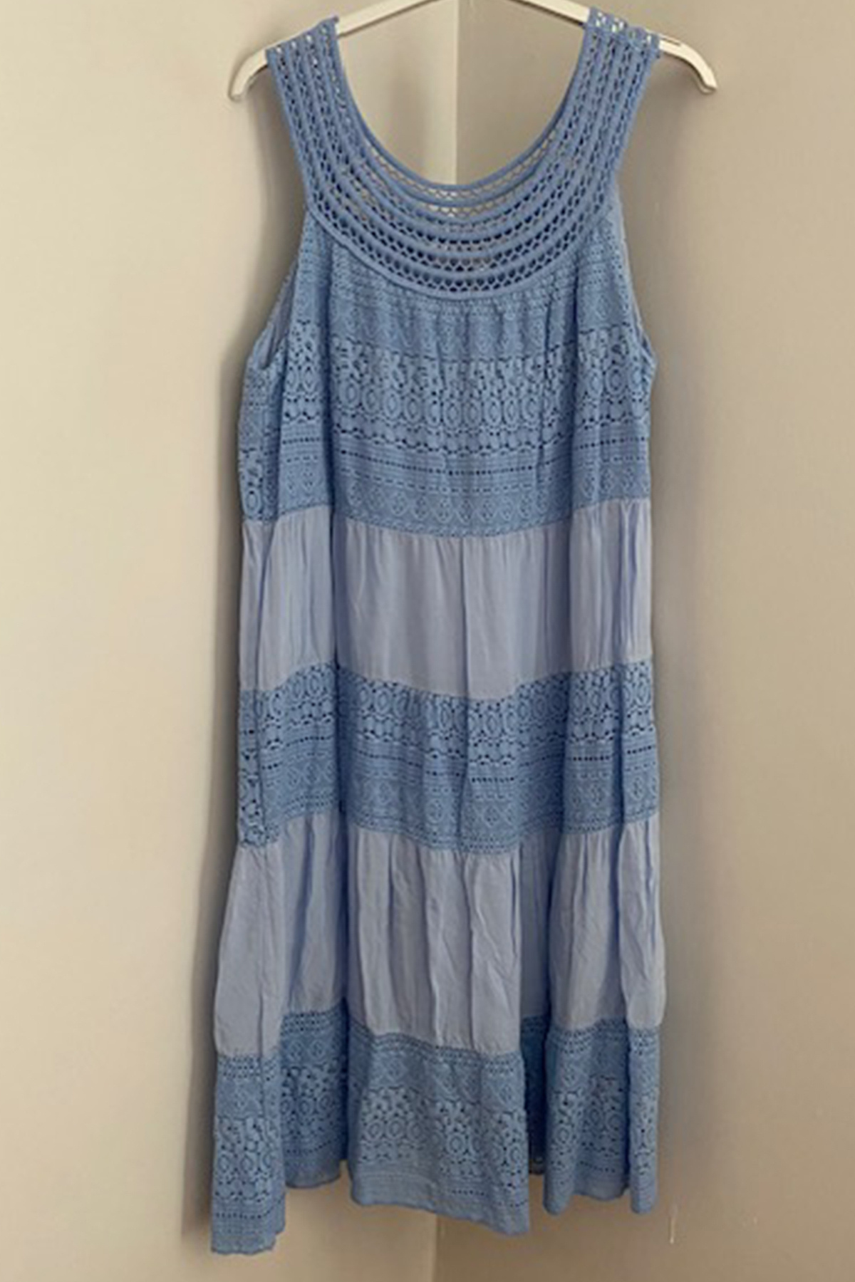 Kadın İtalyan Mavi Yuvarlak Yakalı Dantel Detaylı Astarlı Kalın Askılı Midi Elbise Kadın İtalyan Mavi Yuvarlak Yakalı Dantel Detaylı Astarlı Kalın Askılı Midi Elbise 7043-GM Standart
