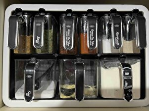 Standlı 9lu Baharatlık Takımı Kendinden Yapışkanlı Etiketli Kaşıklı Ve Kapaklı Baharatlık Seti Standlı 9lu Baharatlık Takımı Kendinden Yapışkanlı Etiketli Kaşıklı Ve Kapaklı Baharatlık Seti 0514SB تک سایز