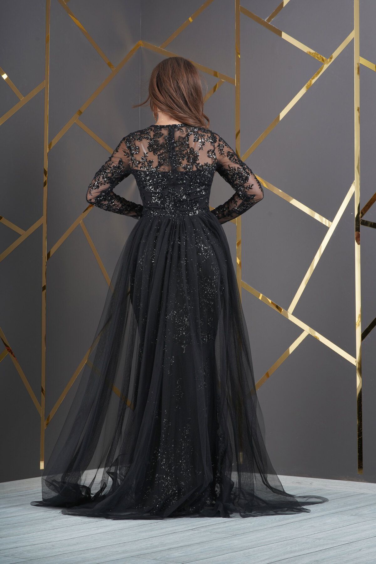 Özel Simli Flok Baskı Dantel Abiye Özel Simli Flok Baskı Dantel Abiye 7248 54
