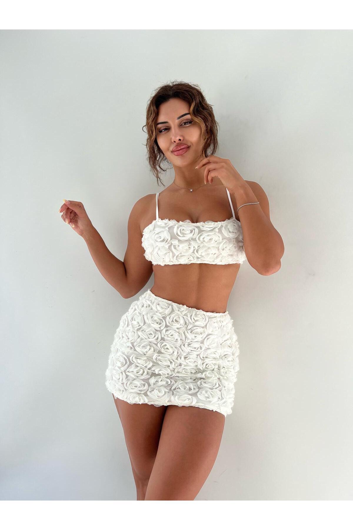 Beyaz Tül Üzeri Flog Baskılı Kaz Ayağı Desenli Kolluklu Midi Elbise Beyaz Tül Üzeri Flog Baskılı Kaz Ayağı Desenli Kolluklu Midi Elbise PL1945K S