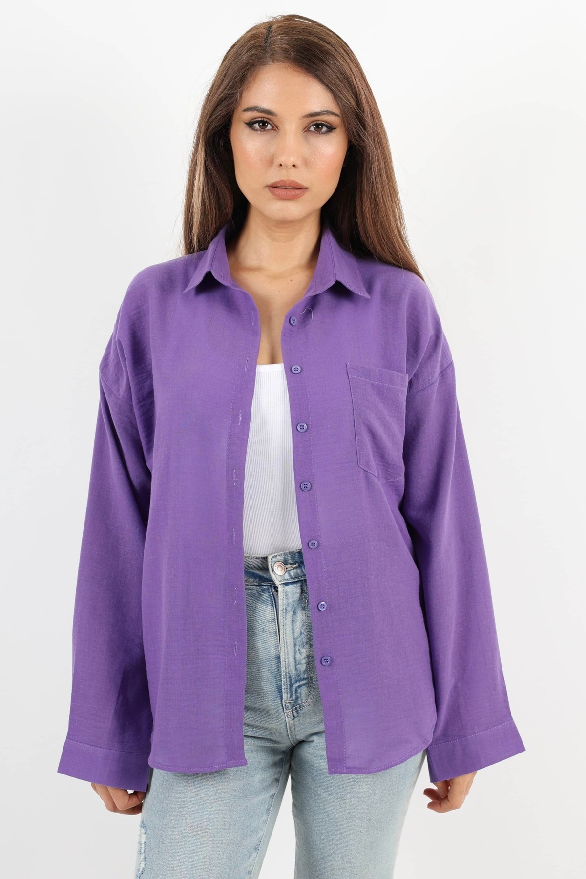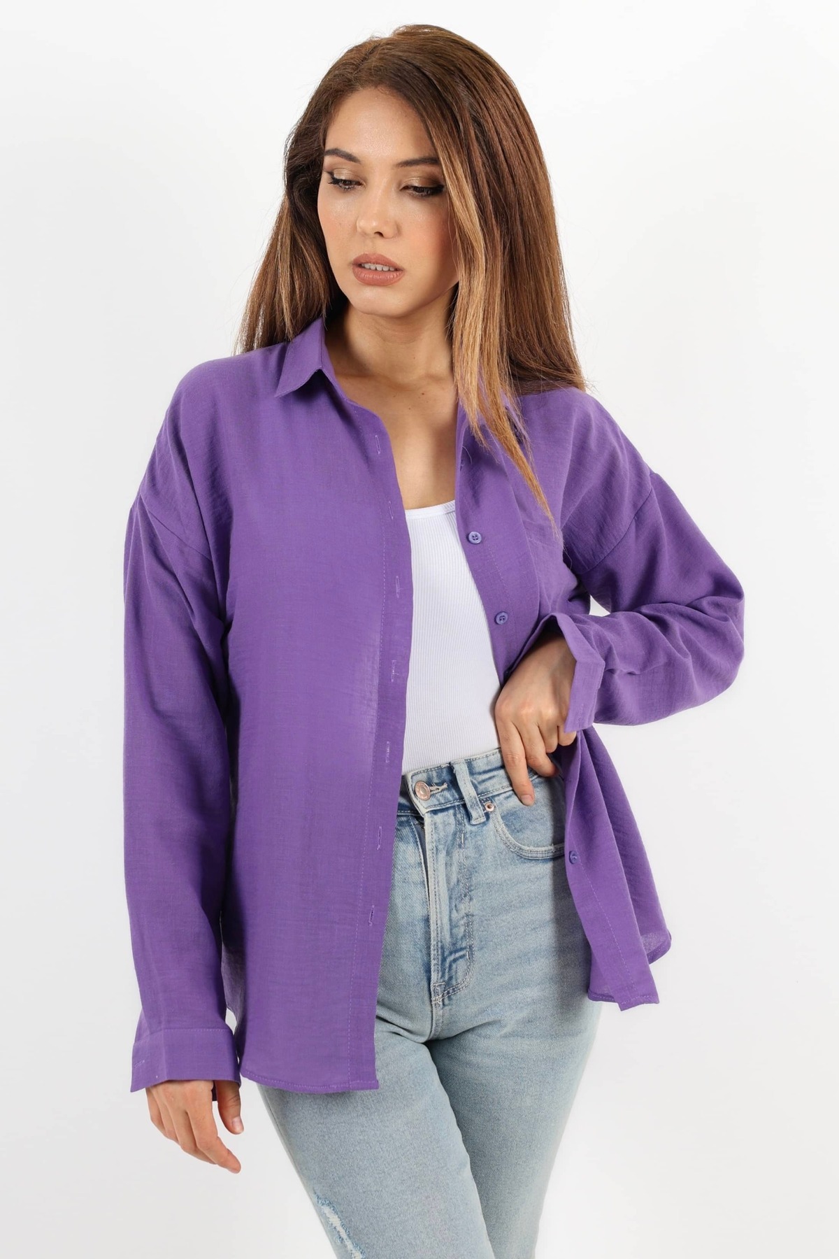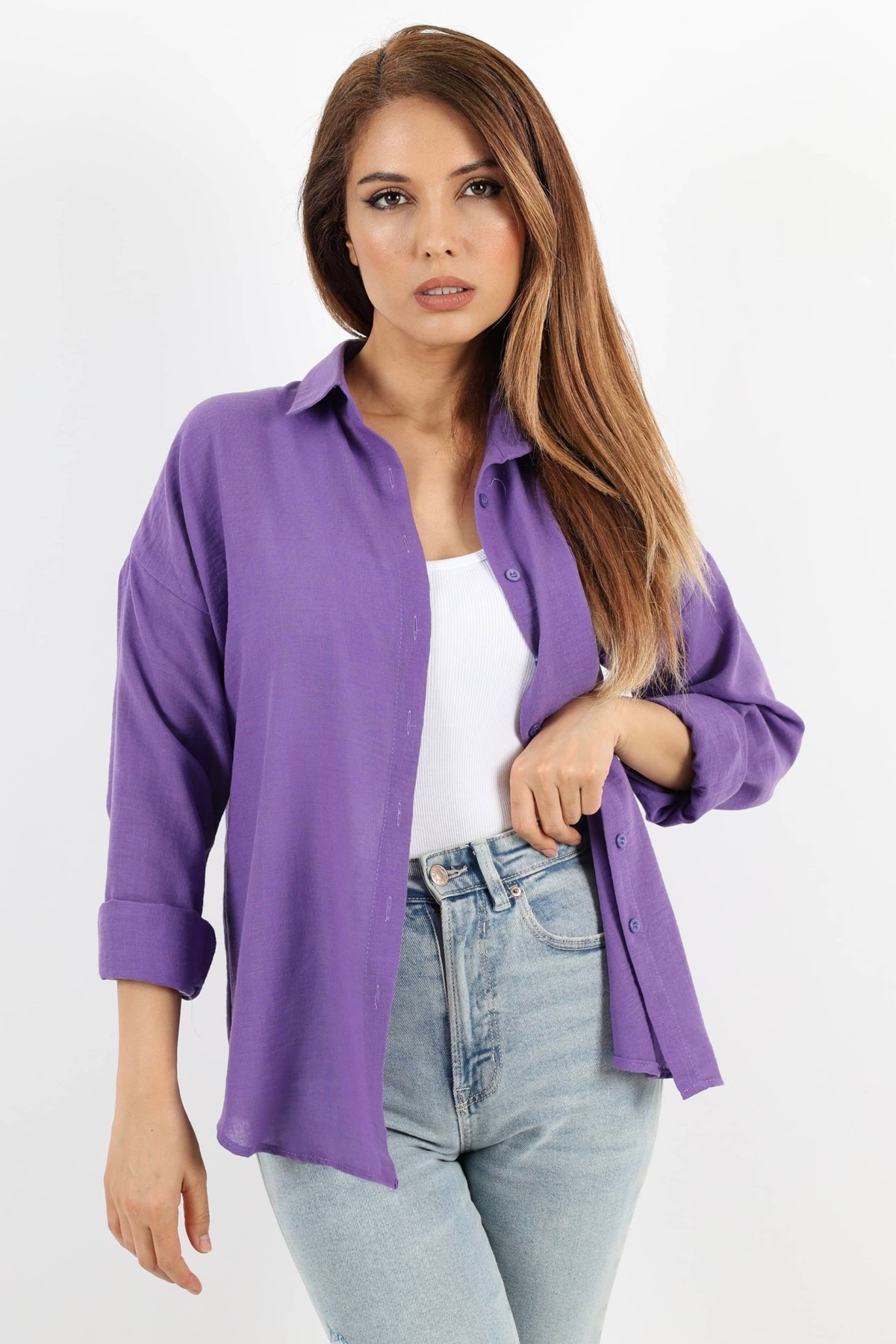Kadın Well Mor Keten Gömlek Kadın Well Mor Keten Gömlek 1311 XL