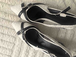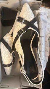 KENDI BEYAZ TUVIT KUMAS SİYAH TOKALI SIVRI BURUN TOPUKLU SANDALET KENDI BEYAZ TUVIT KUMAS SİYAH TOKALI SIVRI BURUN TOPUKLU SANDALET KENDISUMMER24 43