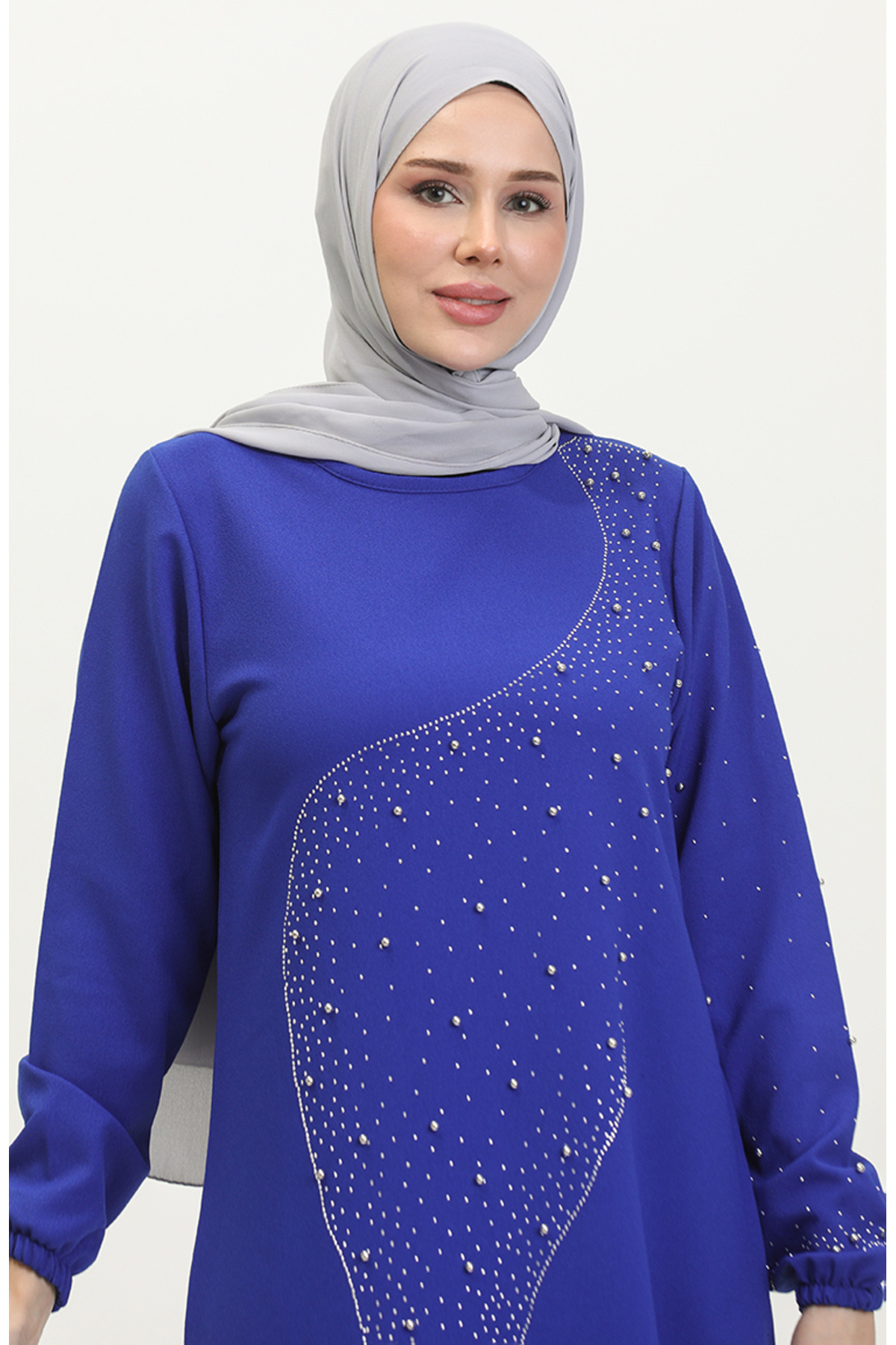 Taş Baskılı Abiye Elbise 0407-01 Saks Taş Baskılı Abiye Elbise 0407-01 Saks NAZRA0407-01 38-40