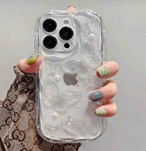 iPhone 15 Pro Max Uyumlu Şeffaf Simli Kamera Korumalı Sevimli 3D Kelebek Süslü Yanları Dalgalı Kılıf iPhone 15 Pro Max Uyumlu Şeffaf Simli Kamera Korumalı Sevimli 3D Kelebek Süslü Yanları Dalgalı Kılıf 15PmPuffer تک سایز