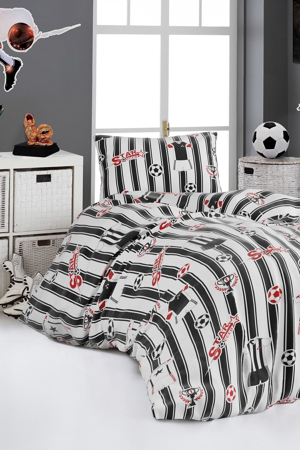 Sarı - Kırmızı Renkli Taraftar Desenli, Tek Kişilik Nevresim Takımı Sarı - Kırmızı Renkli Taraftar Desenli, Tek Kişilik Nevresim Takımı تک سایز