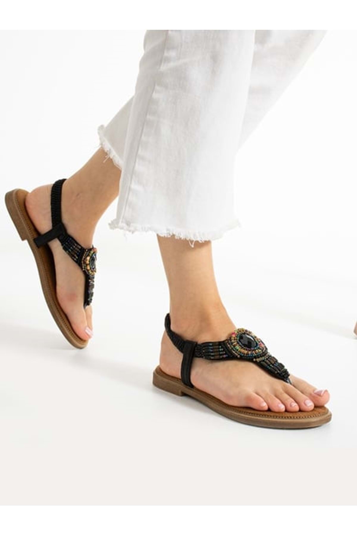Feles Taş Detaylı Parmak Arası Kadın Sandalet SİYAH Feles Taş Detaylı Parmak Arası Kadın Sandalet SİYAH AST07651 40