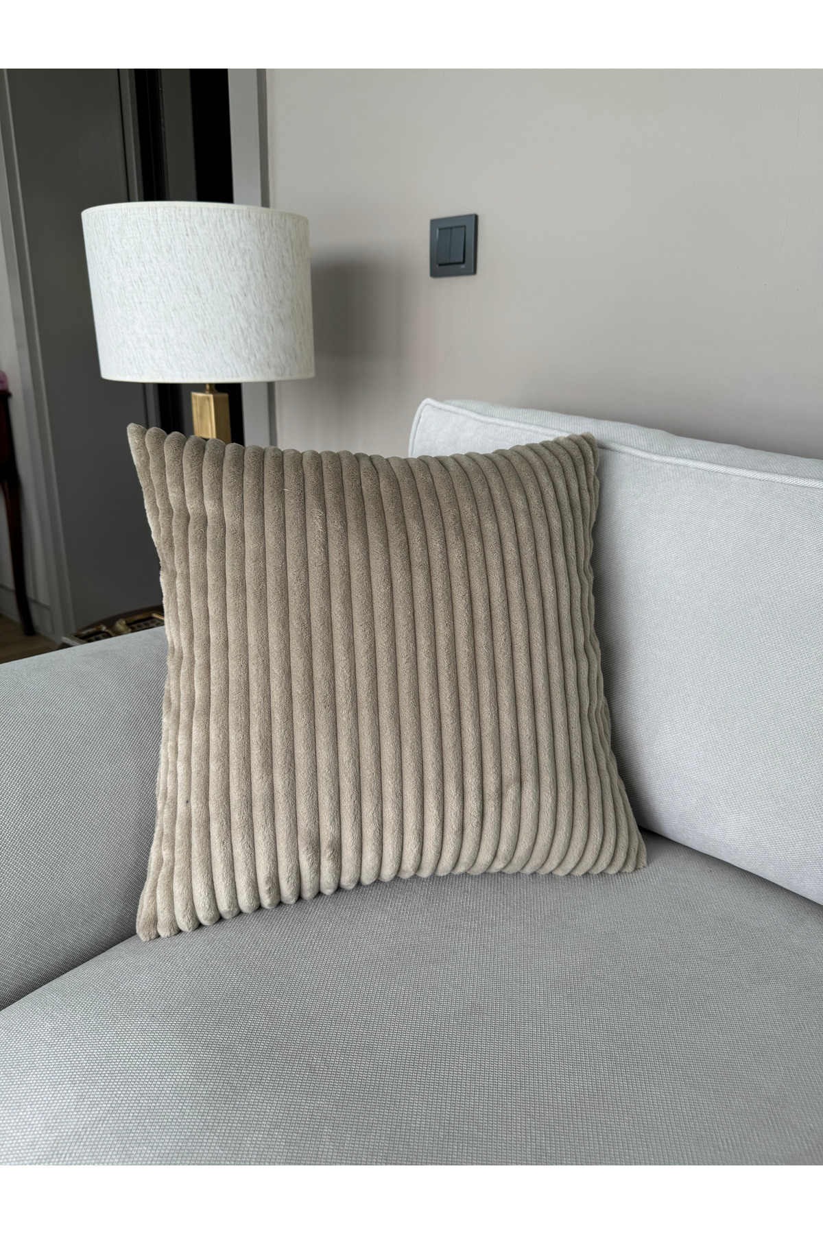 Modern Çizgili Koyu Bej Yastık Kırlent Kılıfı Modern Çizgili Koyu Bej Yastık Kırlent Kılıfı KHY0011 45 x 45