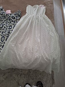 Fisto Detaylı Straplez Midi Elbise Ekru Fisto Detaylı Straplez Midi Elbise Ekru 24Y32087 L
