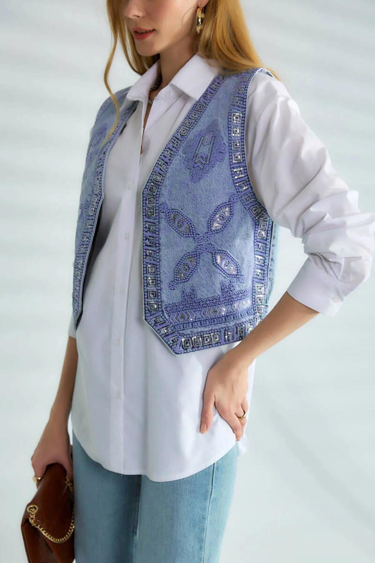 Kadın Nakışlı Kot Yelek Kadın Nakışlı Kot Yelek M37230 XL