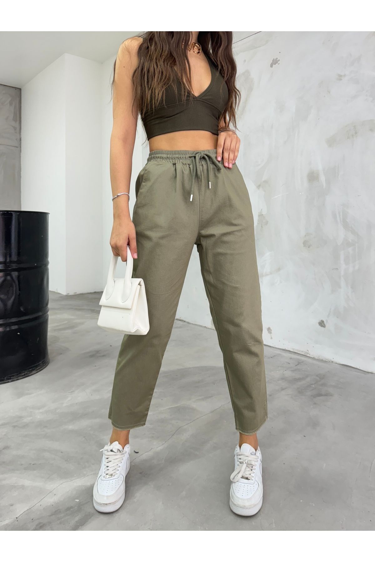 Kadın Pamuk Ve Keten Karışımlı Yüksek Bel Dar Kesim Cepli Pantolon Kadın Pamuk Ve Keten Karışımlı Yüksek Bel Dar Kesim Cepli Pantolon BKL0000010191 XL