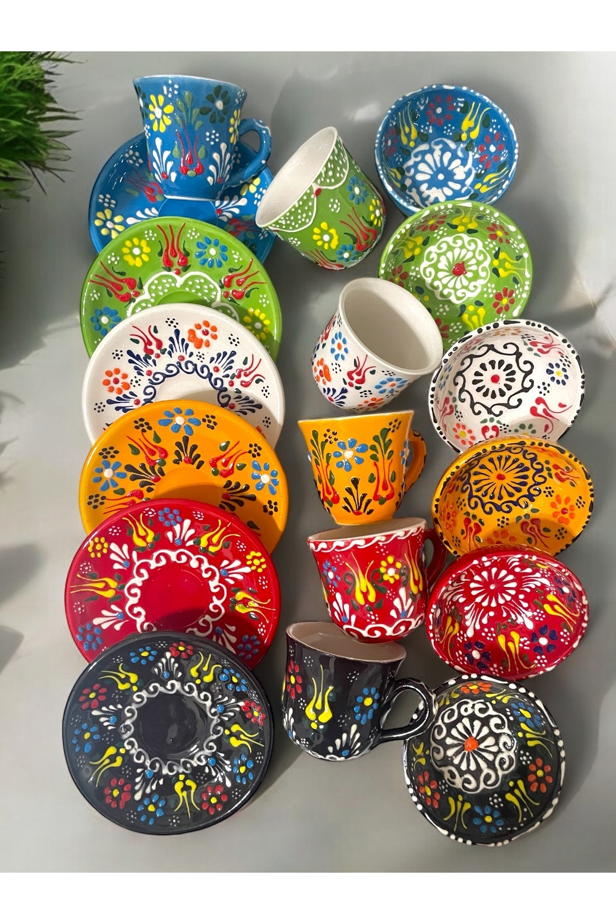 Dekoratif Şık Tasarım Sarı, Kırmızı, Yeşil ve Kahverengi Renklerinde Çay-Kahve Fincan Seti 4 Kişilik Dekoratif Şık Tasarım Sarı, Kırmızı, Yeşil ve Kahverengi Renklerinde Çay-Kahve Fincan Seti 4 Kişilik ARTAMTR04 تک سایز