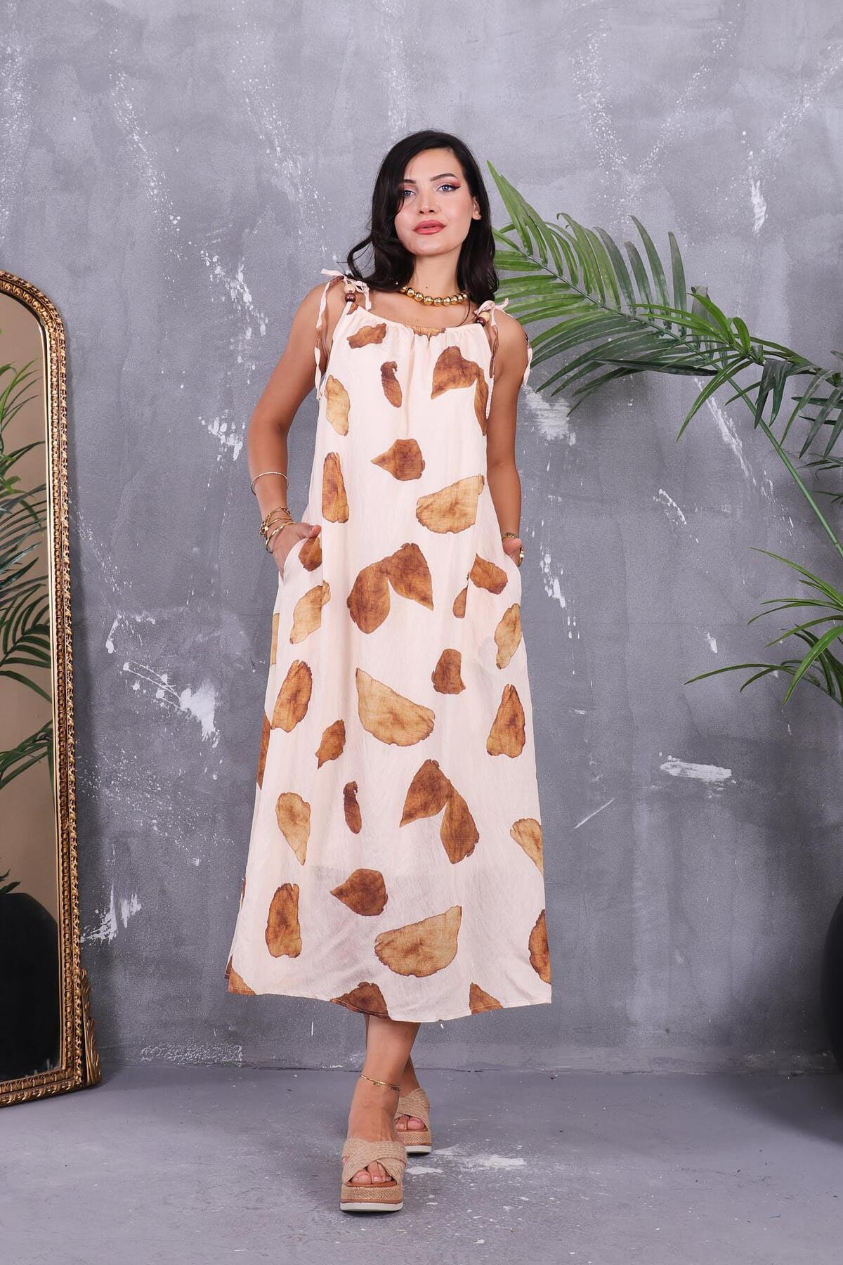 2501 Desenli Sıfır Kol Şifon Elbise - Pembe 2501 Desenli Sıfır Kol Şifon Elbise - Pembe 2501BGD19 42
