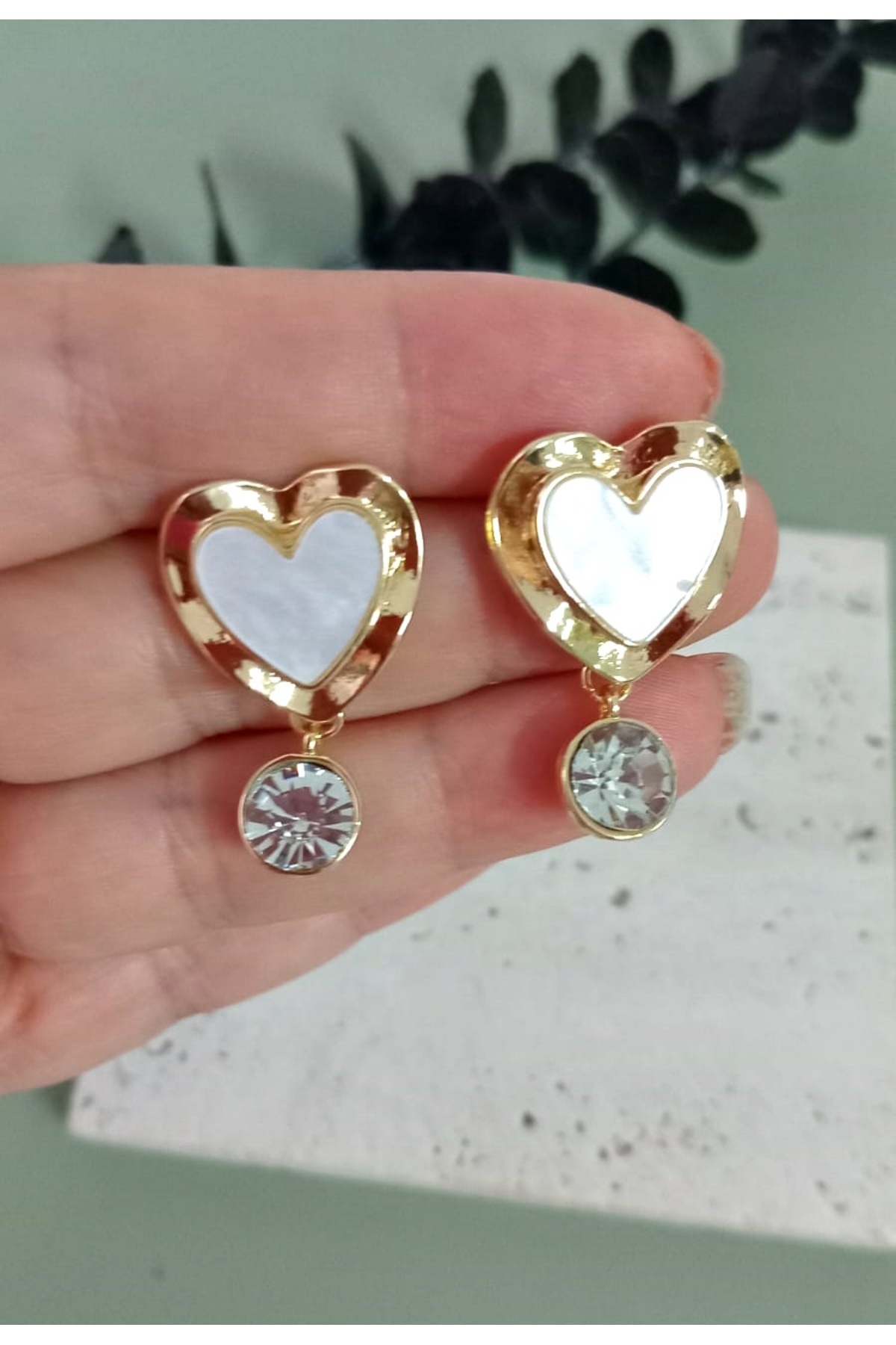 Sedefli Oval Çelik Küpe Sedefli Oval Çelik Küpe mia16 2 cm