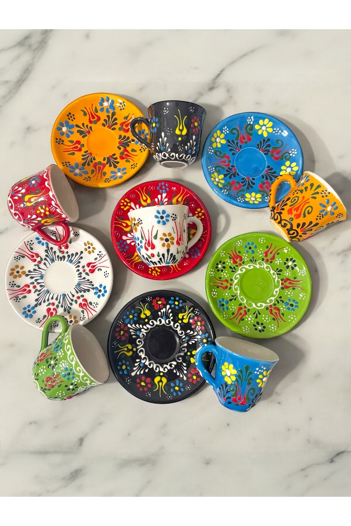 Dekoratif Çini İşlemeli Büyük Kupa, Duble Kahve Fincanı, Ayran Bardağı, Meşrubat Bardağı 2 Adet Dekoratif Çini İşlemeli Büyük Kupa, Duble Kahve Fincanı, Ayran Bardağı, Meşrubat Bardağı 2 Adet ARTNESSK02 تک سایز