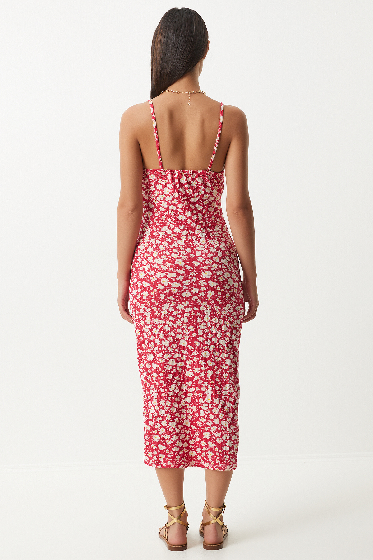 Çiçekli Desenli Yırtmaçlı Yazlık Örme Elbise KOYU PEMBE LCI0003 Çiçekli Desenli Yırtmaçlı Yazlık Örme Elbise KOYU PEMBE LCI0003 40
