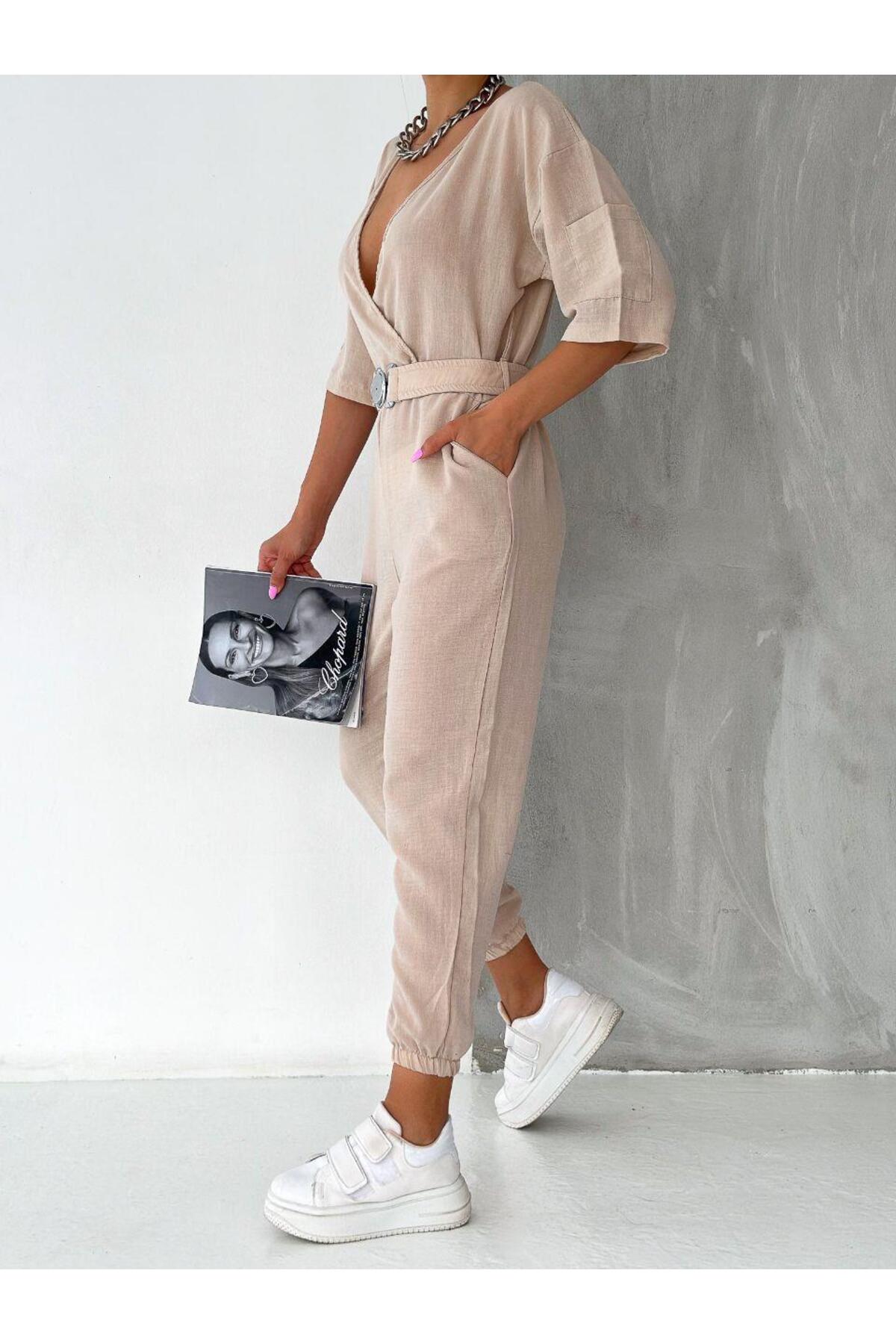 Kemerli Salaş Keten Tulum Pembe Kemerli Salaş Keten Tulum Pembe SM53 XL